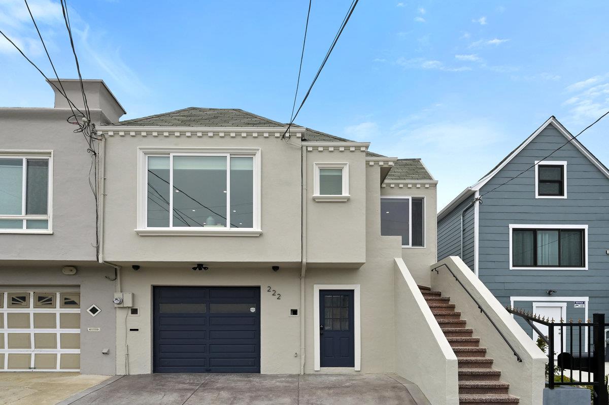 A fully reimagined 4 bed, 2 bath home, freshly painted & updated inside & out. Highly flexible floor plan allows for multiple living options. Upon entering, you are greeted by the airy & bright LR w/sleek fireplace. Sparkling kitchen is outfitted w/ 2 wine fridges & high-end appliances, all housed in thoughtful cabinetry. Massive island to host & entertain spills into open concept LR/DR. Just beyond are 2 naturally bright & spacious bedrooms w/large custom closets. The bedrooms share a dazzling bathroom w/dbl sink, soaking tub, & glass shower enclosure. Descend the stairs to find 2 adtl bedrooms, including a luxurious primary bedroom ft a bonus space, perfect for walk-in closet of your dreams/cozy office nook. Newly remodeled bath boasts modern tiles & glass walk-in shower. Spacious backyard w/planter boxes & patio. Interior access to garage w/ W/D hookups & exterior access seals the deal. 1 block from rec center & park, minutes to Alemany Blvd, 19th Ave & 101/280, Stonestown Galleria.