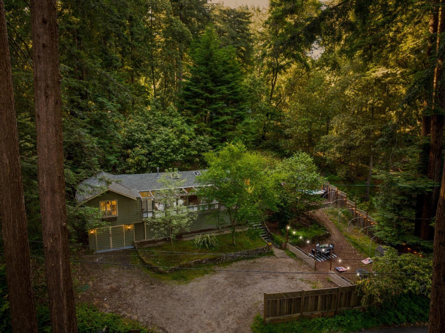 The magic of evenings at this stunning private property is undeniable; take a dip in the hot tub and enjoy the splendid redwoods that cradle you and the tapestry of stars overhead. The living room, graced by skylights and an electric fireplace, seamlessly flows into the sunroom, bathing the home in natural light. A dining room and large kitchen make hosting effortless, while a laundry room and built-in closets in each room ensure comfort. The home also includes a study or office for readers or a work-from-home office. Upgrades include a 200 amp electrical panel, a 50 amp cord connection for a generator, a hot tub, a retaining wall around the hot tub area, a chicken coop, and an electric door lock. Ideally located for easy access to highways 9 and 17, return home from your commute to a vacation. Across the street from the Henry Cowell redwood park, with the bustling downtown Felton's many shops and entertainment minutes away, this home has it all.