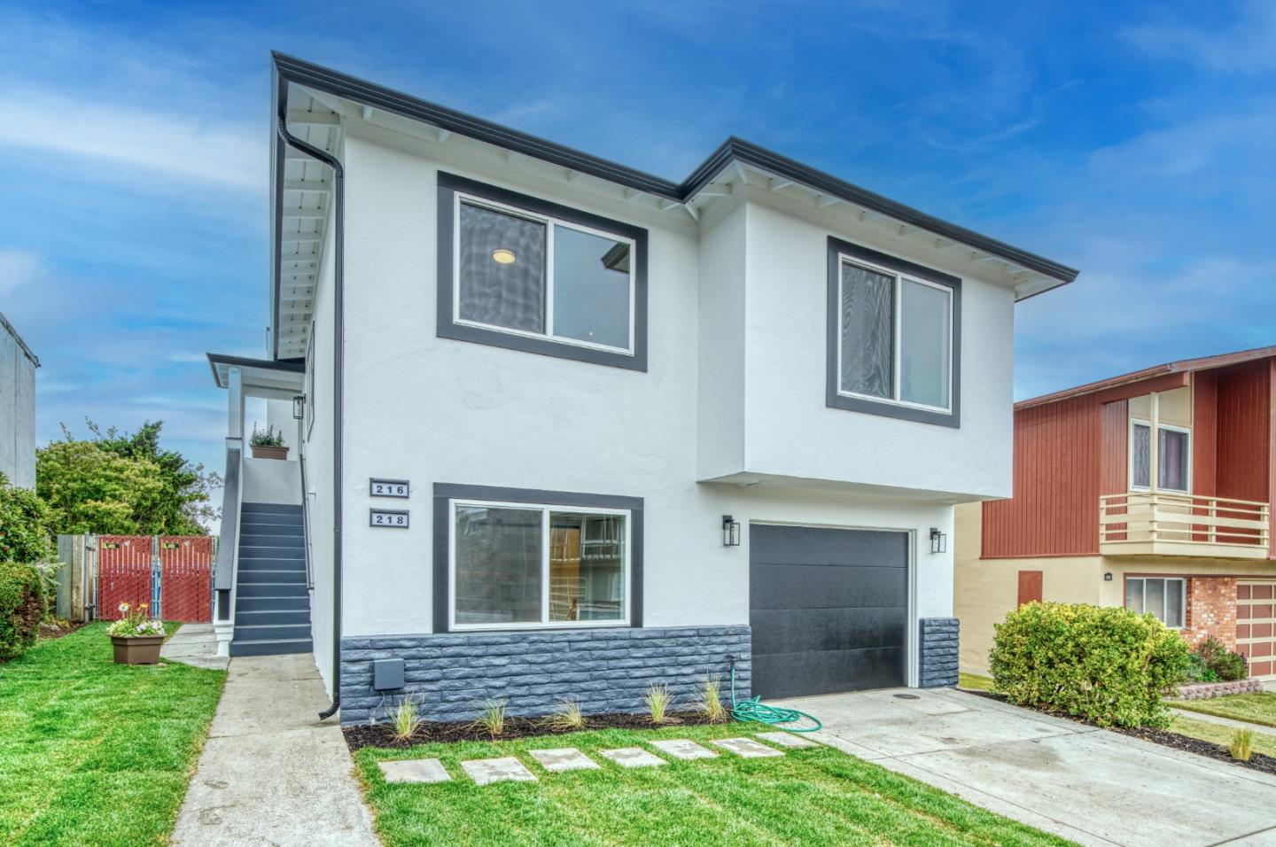 Beautiful, re-built, OCEAN VIEW home. Could be a 4 bed, 3 bath single family home with family room and second kitchen or a 3 bed, 2 bath home upstairs with a separate, legal 1 bed, 1 bath ADU, (permitted in-law), downstairs. Recently rebuilt, new roof, gutters, electric, plumbing, 2 new furnace systems, insulation, drywall, fireplace, luxury vinyl flooring, double-pane windows, fixtures, vanities in bathrooms, all appliances, cabinets, quartz and butcher block countertops and lighting in the 2 kitchens and everything in between is NEW. Also, an added deck off the living room into fully fenced back yard. Sale also includes 2nd, attached parcel; APN# 009-650-280 with increases the lot size to 6,310 sq. ft., and insures unobstructed view. Near transportation, shopping and SFO.