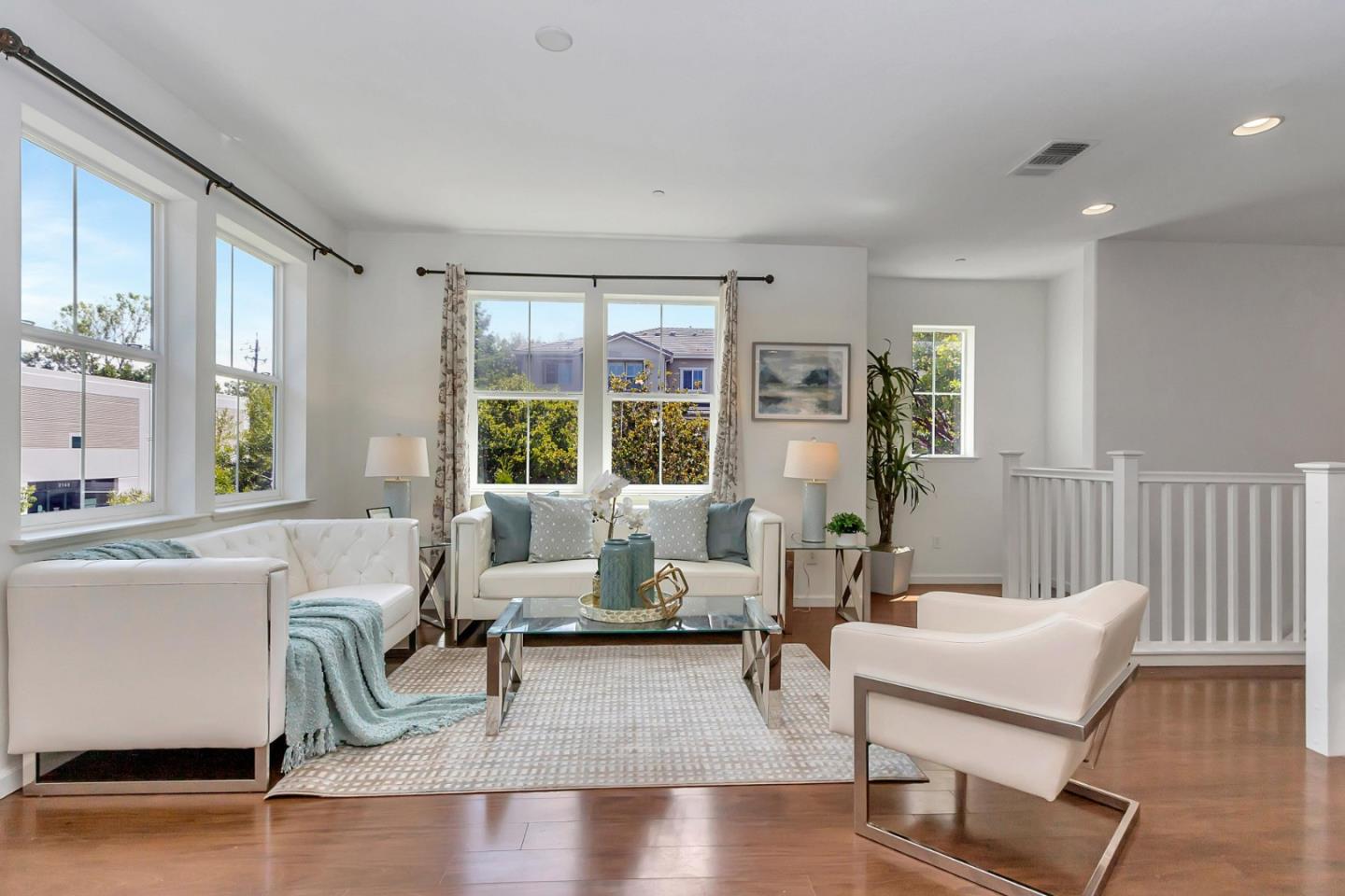 Do Not Miss this Beautiful and Spacious NE facing CORNER UNIT in the most desirable neighborhood of San Jose that offers unobstructed views of Mountains. Beautifully located End-Unit with plenty of sunshine & all day air ventilation. Home is Freshly Painted, New Wood Flooring, New Recess Lightings and Remodeled with Designer Touch. Open and airy floor plan with high ceilings, gourmet kitchen with granite countertops, Top of the Line stainless steel appliances, walk-in closets, in-unit washer & dryer, recessed lights, dual zone central A/C and heating, double pane windows, 2-car garage, pre-wired for security system, and so much more! Pet and kid friendly community with low HOA of only $150 offers BBQ areas, playground, and greenbelt. Walking distance to shopping plaza, schools, City Sports, and many great restaurants! Minutes from Costco, Great Mall, BART & Light Rail, San Jose Golf Course, newly proposed Google, Amazon, & Apple Campus, and accredited Challenger & Stratford schools.