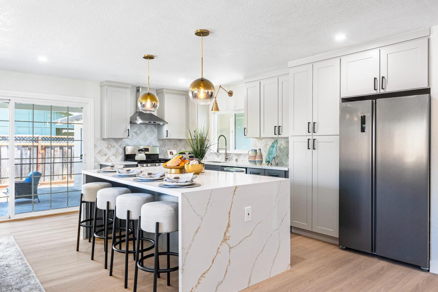 wow, wOW, WOW! Fully renovated (with all permits), modern, wide-open floor plan! This East facing property with a North facing front door has 4 bedrooms PLUS a detached home office! This one has every envious property feature: grand waterfall kitchen island, luxury high-grade vinyl flooring, solar panels (OWNED), new paint (interior and exterior), recessed lighting, walk-in closet, upgraded bathrooms with large format European style tiling, huge flat back yard (every inch is usable), low maintenance artificial grass, premium presidential roofing. The whole home has been upgraded - THEREs NOTHING ELSE TO UPGRADE! Premium schools = premium education. Quiet neighborhood, tucked away yet centrally located. This home is a must-see, thereafter, you'll know that this home is a must-have. Tour ASAP, this one will be gone very soon!