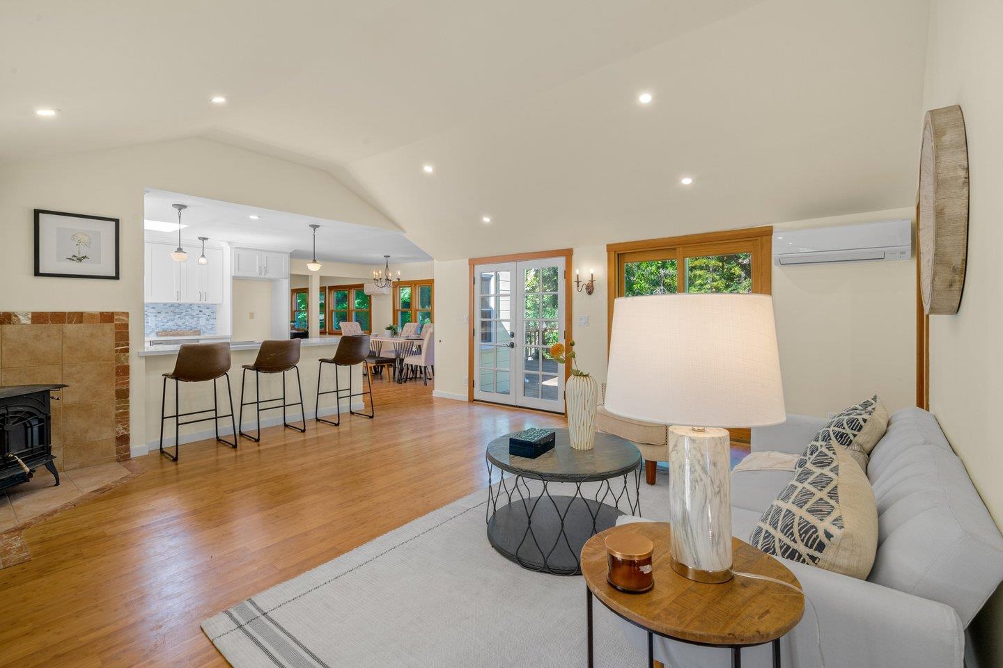 Move in & enjoy this beautiful home on over 3 acre lot. This amazing retreat-like property has vast land for multiple structures, fields, chicken coups, rabbit pens, sufficient space for horses, gardens & private beach on year-round creek flowing through the property. The peaceful yet easily accessible to Silicon Valley property welcomes you with the soothing sounds of Uvas Creek. The main residence has been wonderfully renovated. Newly remodeled open chef's kitchen with quartz countertops, breakfast bar & stainless steel appliances. Fantastic skylights, natural light & privacy. Gleaming floors. All 3 bedrooms are spacious. Crisp fresh air. Huge deck overlooking creek. Additional large outbuilding for office, exercise/craft/spare room. Large shop. Expansive garden with spacious lawn, mature oaks, water features & stone paths. Only 4 turns from Almaden Expy exit off HWY 85. This home offers room to grow & an accessible escape from the congestion & high costs of urban living. Wow.