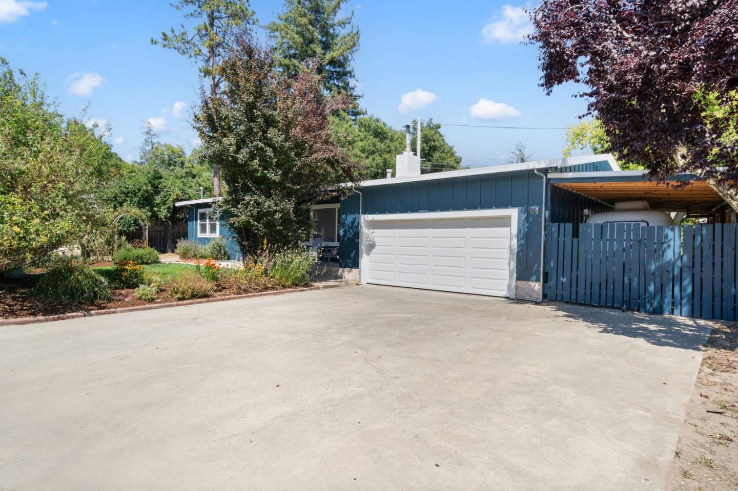 Located on a quaint cul-de-sac on an almost 15,000SF flat parcel, this Single level 3bd/2ba is in close proximity to all that Scotts Valley has to offer. Step into the open living space with built-in bookshelves, fireplace w/insert and large picture window. All three bedrooms have newer wood floors, and the main bathroom has a newer vanity with a double sink and tiled shower and tub. Delight in the updated kitchen with lots of prep space including a second sink, plenty of storage and induction range/oven. The property features front, side and back yard areas with several fruit trees including apple, apricot, plum, nectarine, and Fuyu persimmon. The sun filled backyard is perfect for gardening and entertaining or BBQ on your large, covered patio. In addition to the 2-car attached garage there is an extra covered carport area to store an RV/Boat. The detached bonus room could be workout room or office area. So many places to sit back and enjoy your surroundings here.