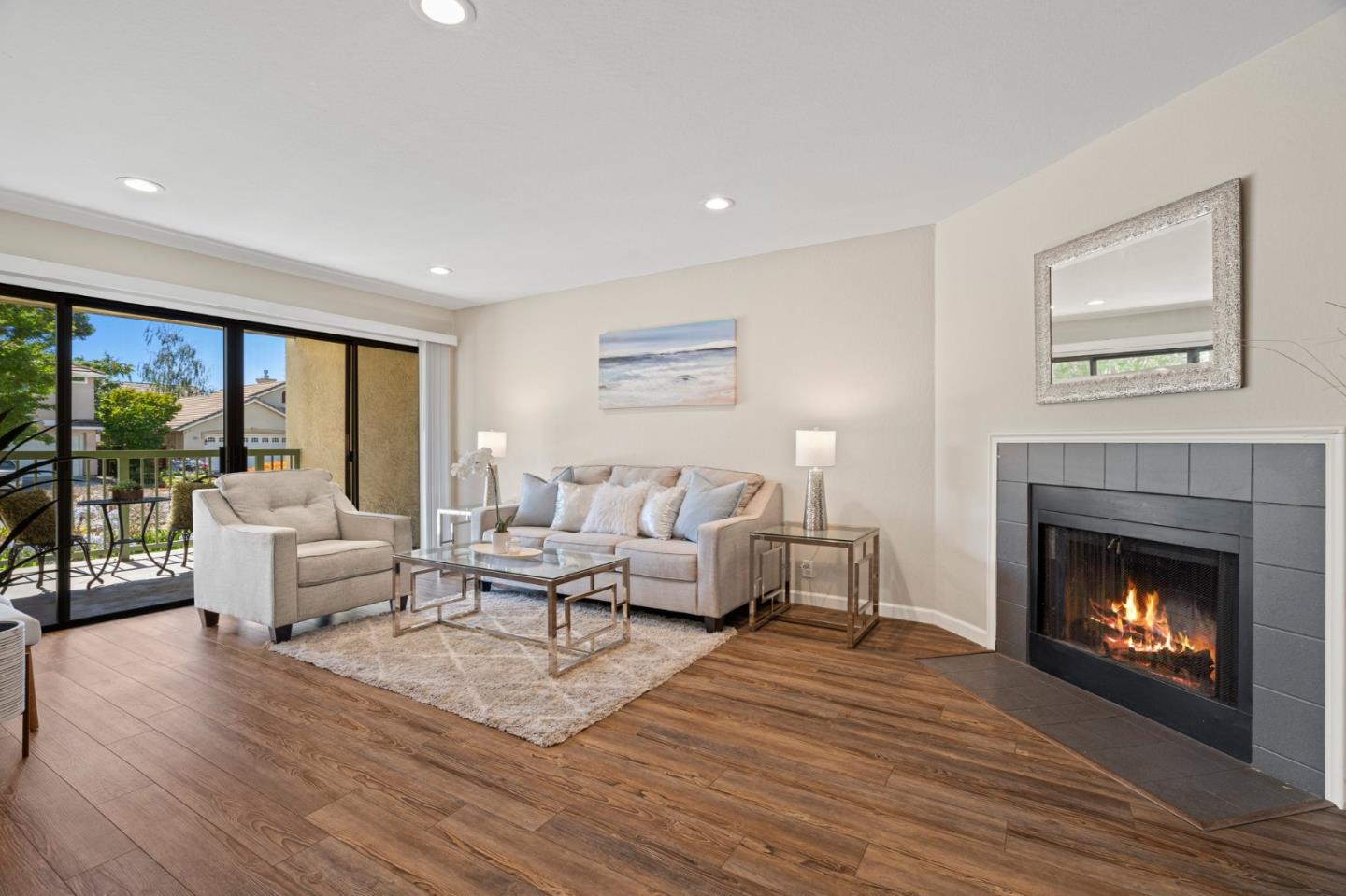 UPDATED FIRST-LEVEL CONDO | A location within moments of just about everything you could want is the primary highlight of this condo in the secure Pavilions community. Also of note are its first-level setting, private patio, in-unit laundry, and extensive list of sleek modern upgrades. The sunny living area with fireplace and smart dimmable lighting shares an open-concept layout with the dining area. Granite countertops, updated stainless appliances, and a peninsula elevate the refinished kitchen, while a sitting nook and walk-in closet embellish the spacious bedroom. Upgrades include a smart lock, Norfolk Pine luxury floors, designer paint, customizable shelving, electrical panel, hybrid water heater, doors, hardware, baseboards, and more. Enjoy community amenities including a fitness center, swimming pool, and spa. Convenient to BART, Lake Elizabeth, trails, freeways, and shopping and dining at Niles District, Fremont Hub, and NewPark Mall!