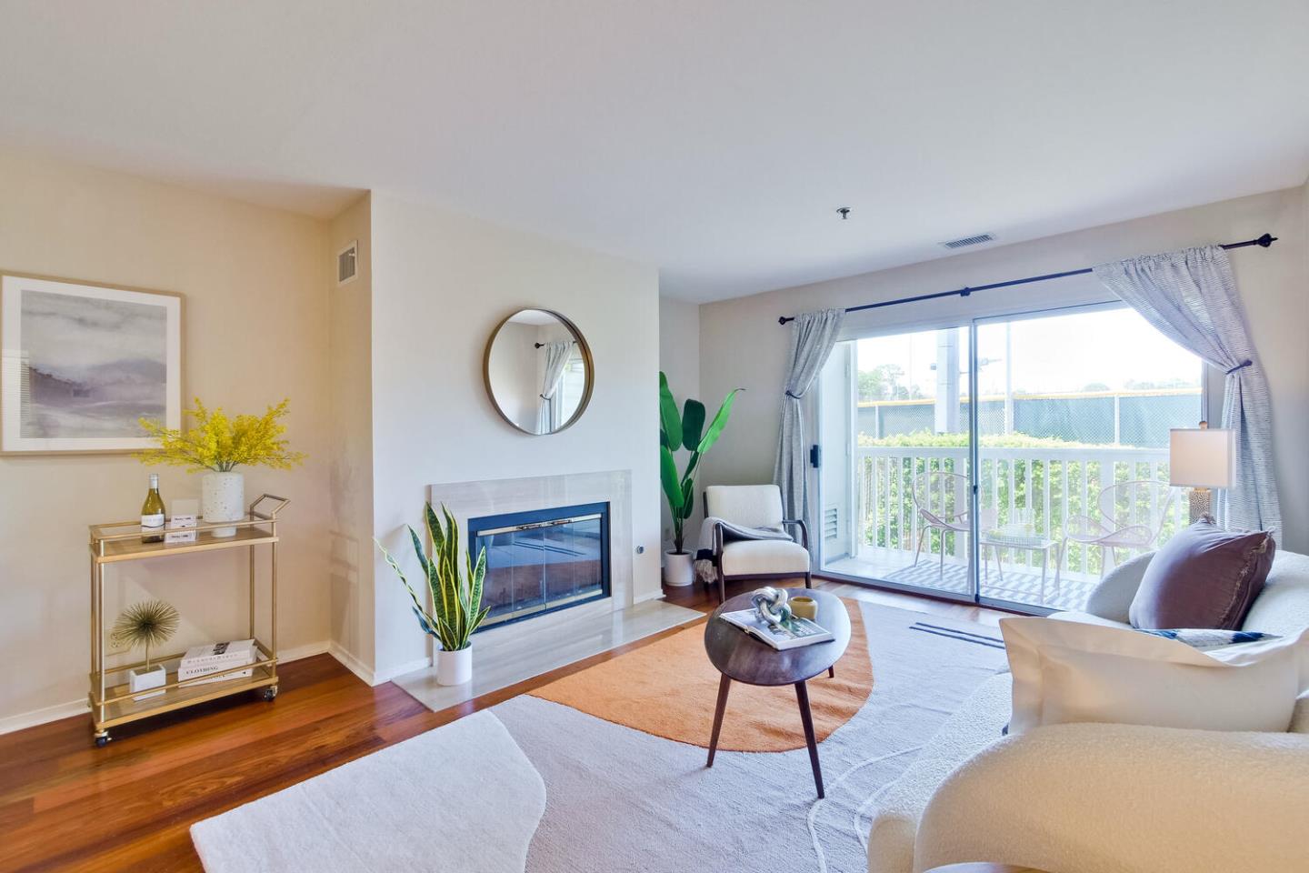 Delightful, tastefully remodeled condo with balcony in one of the most desirable Millbrae neighborhood bordering Burlingame. Secure building with gated underground parking & elevator! Inviting floor plan features spacious Living room with a fireplace and access to a private balcony overlooking green grassy fields and beautiful blue sky. No other buildings facing you. Upgraded granite kitchen with Bosch stove & dishwasher. Breakfast bar for your morning coffee! Washer/dryer in unit w ample storage. Rarely available unit with wall to wall wood floorings unit. Natural sun light. One of the best location on the interior west side of the Windwater Mills Complex. Many fine features, including additional storage closet. 1 car assigned garage space & plenty of street parking complete the charm of this home! Flexible floorplan. Resort-style community with bike storage, HOA pool, and gated parking. Walking distance to shops, restaurants, medical, BART & easy commute. Award winning schools.