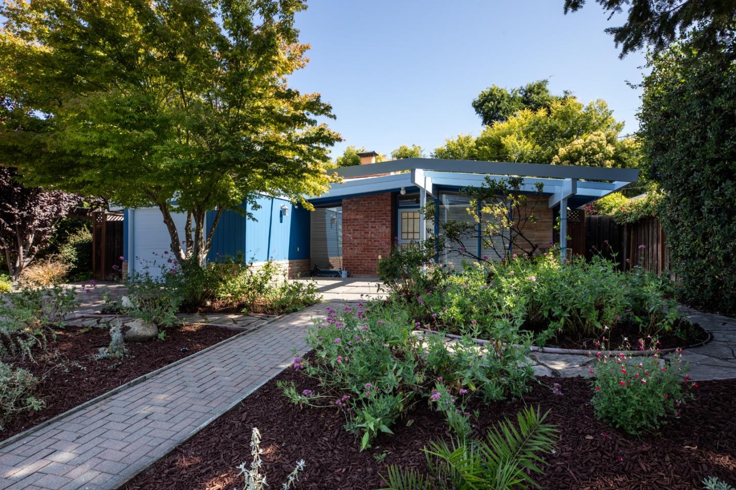 Beautiful front garden welcomes you to this updated and lovingly maintained home. Open floor plan, beamed ceilings and lots of light! Spacious kitchen with ample cabinets, granite counters, gas range, and garden window. Separate dining area has lots of built in storage with additional counter space. Living room with fireplace opens to separate attached sunroom which could be used as a home office, or family room. Private patio leads to large back garden with fruit trees and storage shed. Updated baths with tile flooring. Living room and bedrooms have wood flooring. Freshly painted throughout. Attached 1-car garage. Laundry is conveniently located inside the house. This beautiful home is located close to Monta Loma Park and school, and has easy access to nearby Central Expressway. Close to Caltrain station and San Antonio Center with shopping, restaurants and Showplace Icon movie theatre! No smokers please! Gardener included. Tenant to verify schools. Dogs submit breed/size, no cats please, pet deposit.