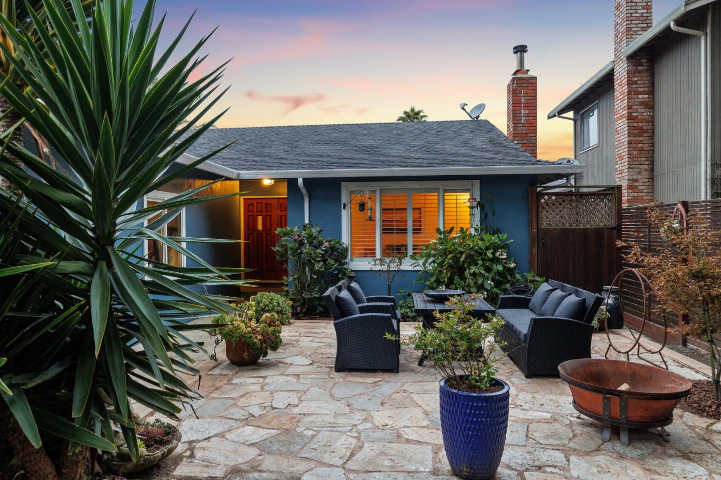 Charming Coastal Rancher nestled in seaside Moss Beach! Set on a level and spacious 5,250+/- sq ft lot, this 3 bed / 2 bath home combines elegant design with functional living. Enter the gate to reveal the private front yard and flagstone patio complemented with mature landscaping. Once inside, the barn door leads you to the heart of the home - a well-appointed kitchen and dining area featuring custom concrete countertops and a generous eat-at-island. The thoughtful layout has a bright living room with fireplace opposite the kitchen, looking out on the patio. Bedrooms to the rear include the primary bedroom w/ an ensuite bathroom and beautiful finishes. A full bath complements the other two bedrooms, one with French doors opening to the backyard and garden - perfect for entertaining & enjoying the ocean air. Convenient laundry room and storage in the attached garage. Ready access to the beach and open space trails. Shopping nearby and easy commutes to The City and Silicon Valley.