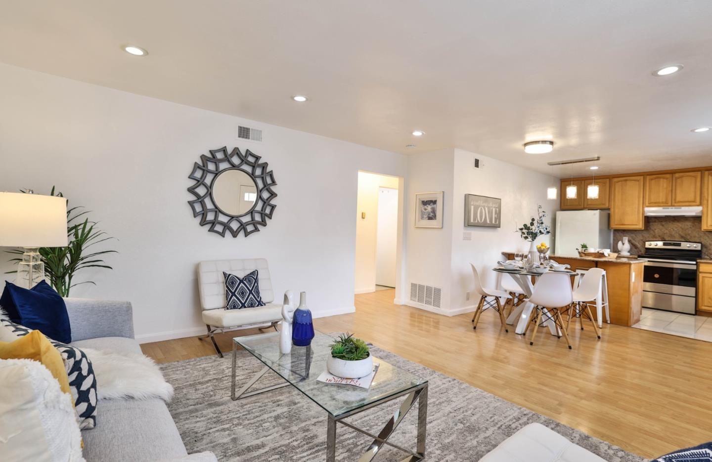SUPER BRIGHT - SPACIOUS - GROUND LEVEL- COMMUNITY POOL. Welcome to 855 Wyman Way #1, a true gem in a coveted location. The kitchen stands as a testament to modern elegance, featuring exquisite granite countertops complemented by pendant lighting that adds a touch of sophistication. With the convenience of an oven range and the warmth of oak cabinetry, this kitchen is a culinary haven. The spacious family room is adorned with cordless blinds, seamlessly combining functionality and aesthetics, while laminated flooring flows throughout the entire home, completing the perfect blend of comfort and style. This delightful home is nearby the beauty of Penitencia Creek County Park, providing a scenic setting for outdoor enthusiasts and nature lovers. The convenience of having the Regional Medical Center nearby ensures easy access to healthcare services, while the allure of the San Jose Flea Market adds a touch of local culture. Indulge in retail therapy with shopping centers housing popular names like Target, Starbucks, Walgreens, Safeway, and CVS, all just a short distance away. Don't miss this opportunity!