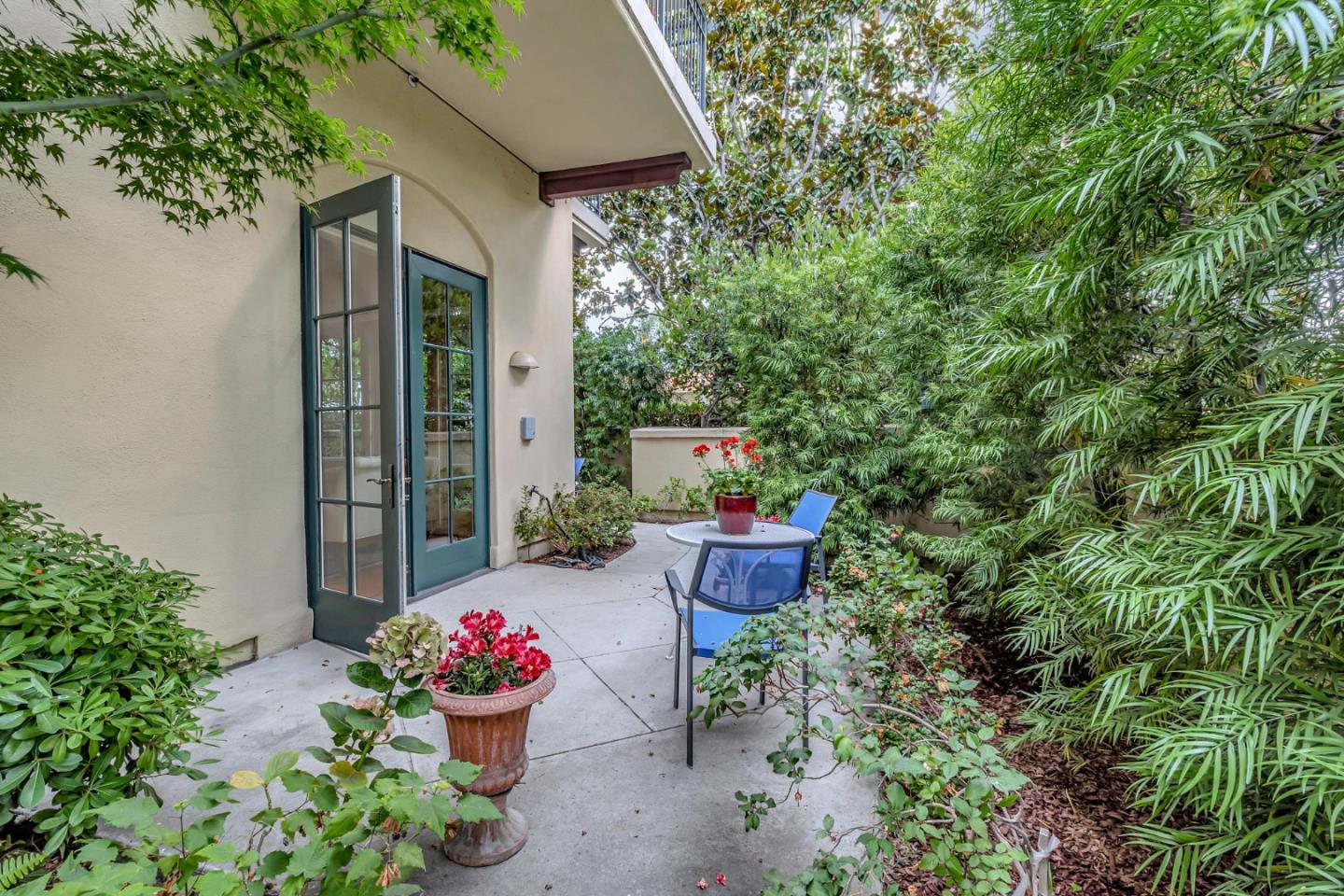 Here is a Beautiful Home with a SECRET GARDEN at The Hamilton, Downtown Palo Alto's Luxury Boutique Residence for adults age 55+. Gardeners, nature lovers and pet owners will love it! The Hamilton's Concierge Service offers 5 gourmet dinners a week, social events, indoor pool, fitness center + classes, book group, card room, library, and private driver. With only 36 units and a devoted staff, residents enjoy a sense of community and the warm welcoming atmosphere the Hamilton provides. 106 has Sophisticated Styling with French doors to garden, high ceilings tall windows and wood tone floors, it is no surprise this was the original model home. It has Living-Dining Room, 2 Separated Bedroom Suites, plus Study/ 3rd Bedroom, Kitchen, Powder Room in approx.1825 SF. The SECRET GARDEN wraps around the home providing lush greenery at every window. IT FEELS LIKE A SINGLE FAMILY HOME. It is condominium ownership. Near by are Palo Alto's cafes, shops, top medical care and Avenidas Senior Center.