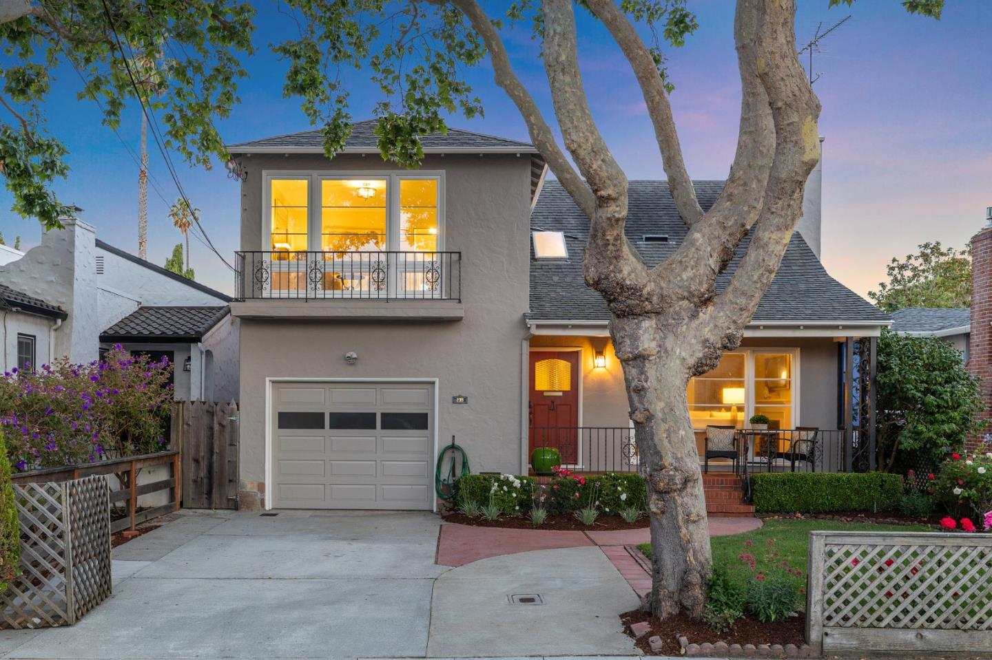On a tree-lined street in Beresford Manor--a Mid-Peninsula neighborhood equidistant to San Francisco and Silicon Valley, East Bay and the coast--is a charming, 1946, turnkey home with delightful appeal inside and out. An enchanting porch entry opens to refinished hardwood floors, freshly painted walls trimmed with crown molding, chair railing and wainscot, new light fixtures, vaulted ceilings, skylights and large windows illuminating the interior. From the formal living room with fireplace and quaint dining room with open-beam ceiling, to the skylit family room with a wall of windows and primary bedroom with en suite bathroom, the homes Old World charm accentuates the modern beauty. Outside, the grounds are a delight with verdant lawns, flowering vines, rose gardens, a deck, covered patio, potting shed and greenhouse, and possibly an ADU. This San Mateo Shangri-la is within strolling distance of parks, schools, public transit, the