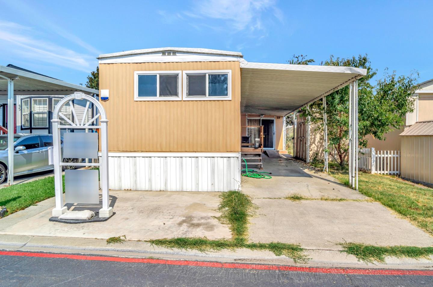 Check out this mobile home in Southlake. This home has 2 bedrooms and 1 bathroom has been updated with laminated flooring all throughout. The kitchen features a stainless steel range, single cell sink, upgraded single lever faucets and granite countertop. The bathroom has been updated with granite on the vanity, a tile shower wall, and updated fixtures. In the backyard there is plenty of space to enjoy with family. An attached carport can fit up to 3 cars. Near freeways 680/880, Costco and shopping centers.