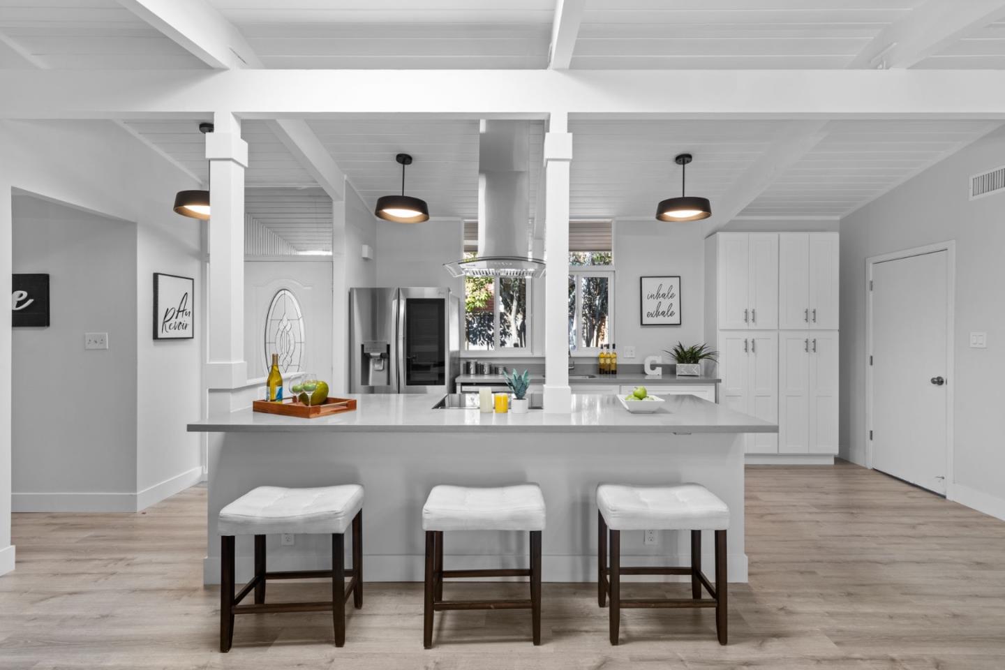 Featuring this Eichler-style gem in San Mateo with 4 bedrooms, 2 baths, bonus room off living room, laundry area with units, and a spacious 1,540 sqft interior. With a 2-car attached garage, fireplace, and fresh paint, it's a must-see. The completely remodeled open kitchen boasts new appliances, and the updated bathrooms and flooring provide a modern touch. One of the standout features of this property is the presence of an attached ADU with a full kitchen, laundry room, bathroom, and primary in the backyard with a separate entrance. Plus a ventilated detached room/storage/office. Buyers are encouraged to verify the permits to suit their needs. The community surrounding 619 Edna Way is a well-maintained and harmonious neighborhood conveniently located near highway 92 granting easy access to highway 101 and 280. Nearby you will also find the local community college, CSM, a quick 5 minute commute. Don't miss the opportunity to make this beautifully remodeled Eichler-style home yours!