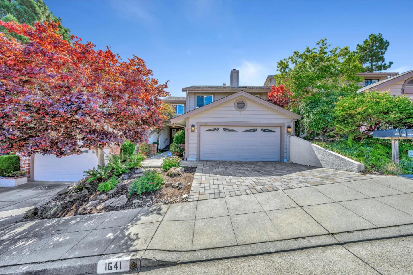 Awarded Outstanding Home in Sugarloaf by the City of San Mateo in 2018, 1641 Toyon Court is where style meets scenic natural surroundings. Upon arrival, admire the paver walkway and private entrance. Inside, you will be greeted by sunlight streaming through the bay window and expansive sliding doors that lead to a thoughtfully landscaped garden amid Laurelwood Open Space. The modern kitchen has high-end appliances, quartz counters, and a breakfast nook that flows nicely into the main living space, a separate formal dining area and guest bathroom. Directly upstairs is an open loft/home office/4th bedroom, complete with a built-in wall system and a birds-eye view of the living room. Nearby are two bedrooms sharing a bathroom. The primary suite has a view balcony, walk-in closet, and private bathroom with a jet tub and shower - all in desired climate control comfort. HOA amenities are popular tennis and pickleball courts. Uniquely, you will be in the coveted Belmont School district.