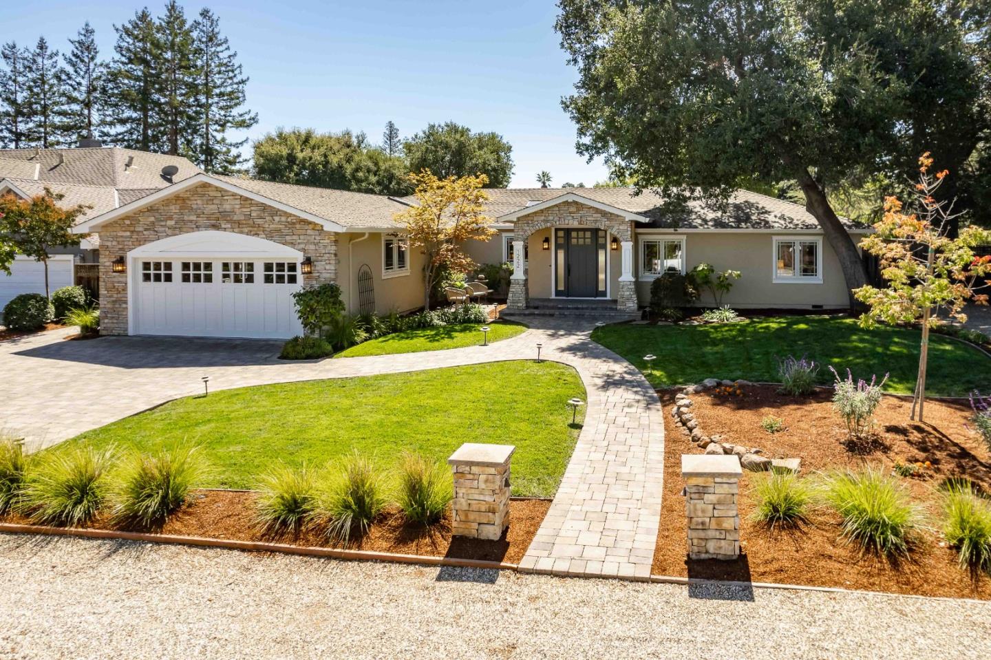 Set on a lot spanning nearly a half-acre is this magnificent 5-bedroom home with over 3,000 square feet of living space. Conveying an atmosphere of casual sophistication and featuring a floorplan brimming with designer touches, this home provides exceptional venues for both entertaining and daily living, with a bold use of glass throughout that fills the space with natural light. Enjoy hardwood floors, two fireplaces, the eat-in kitchen, a dramatic ceiling crowning the expansive family room, and the generously sized primary suite. Sanctuary awaits in the park-like backyard that features a covered outdoor kitchen area, a sprawling lawn, and a meandering pathway along the perimeter for afternoon strolls. And this outstanding location provides close proximity to shopping and dining, beautiful parks, commute options, and top-ranked Cupertino schools (buyer to verify eligibility).