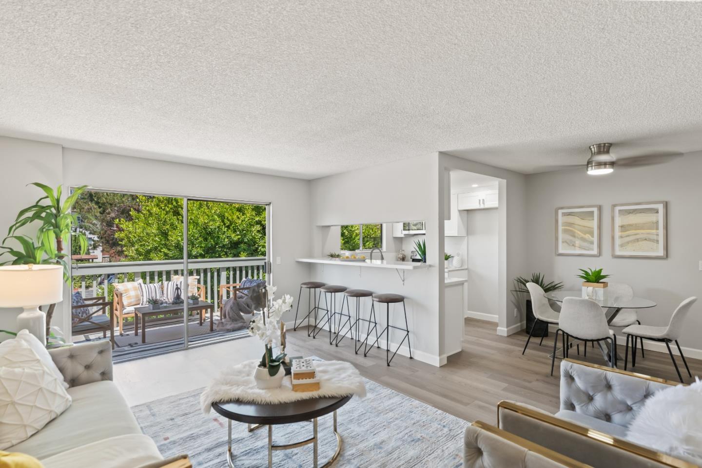 Enjoy the many benefits of community living in this beautifully-updated property with spacious balcony! Cook with ease on quartz countertops with new white custom cabinets & stainless steel appliances. Relax in the living room with a sliding glass door that lets in natural light or on the balcony to enjoy wonderful year-round weather. Spacious primary bedroom has lovely pool view & direct access to the bathroom with floating vanity & shower/tub great for relaxing. No neighbors above or below this unit! Other home highlights include new interior paint throughout, designer-selected accent walls, abundant storage, & new LVT flooring. Idyllic complex includes sparkling pool, cabana, clubhouse, beautifully-maintained landscaping, assigned covered parking space with cabinet storage, & ample additional unassigned spaces close to the unit. Top schools: Ponderosa Elementary, Peterson Middle, & Wilcox High (buyer to verify)! Prime location just 0.5 miles to CalTrain & Lawrence EXPY for commuters!