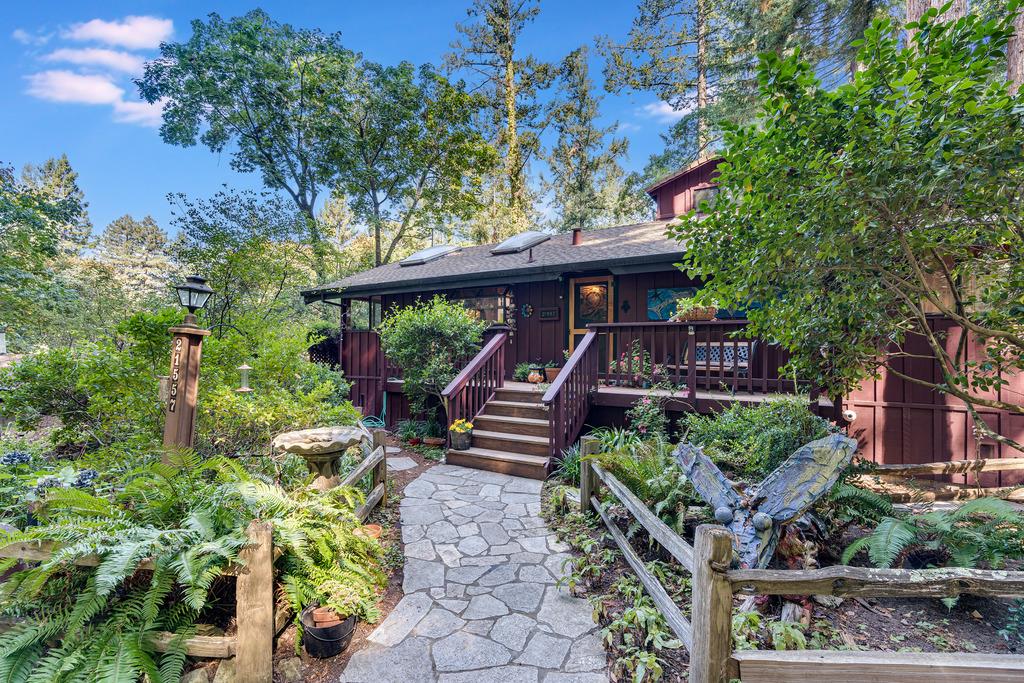 Adorable home offers a country resort-style setting, surrounded by natural beauty in sought after Redwood Estates! Open concept design features wood beam and vaulted ceiling, beautiful hardwood flooring, large windows, skylights and lovely natural light! Updated kitchen with granite countertops, custom cabinetry with soft closing drawers, a built-in microwave, refrigerator, garden window, dining area. 3 bedrooms plus darling crows nest bonus room! Downstairs additional family room and mini kitchen, perfect in-law or guest retreat. Ample deck and spacious patio for outdoor dining and relaxation amongst a stunning Redwood forest views. Laundry area, extra storage, garage/workshop storage shed and new Generac generator. Ample parking. Friendly community with playgrounds, pool, community center, new fire station. Near Nonno's Italian Takeout, Redwood Store, and the Post Office. Great commute location close to town and best Los Gatos Schools: Lexington Elem, Fisher Middle and LG High!