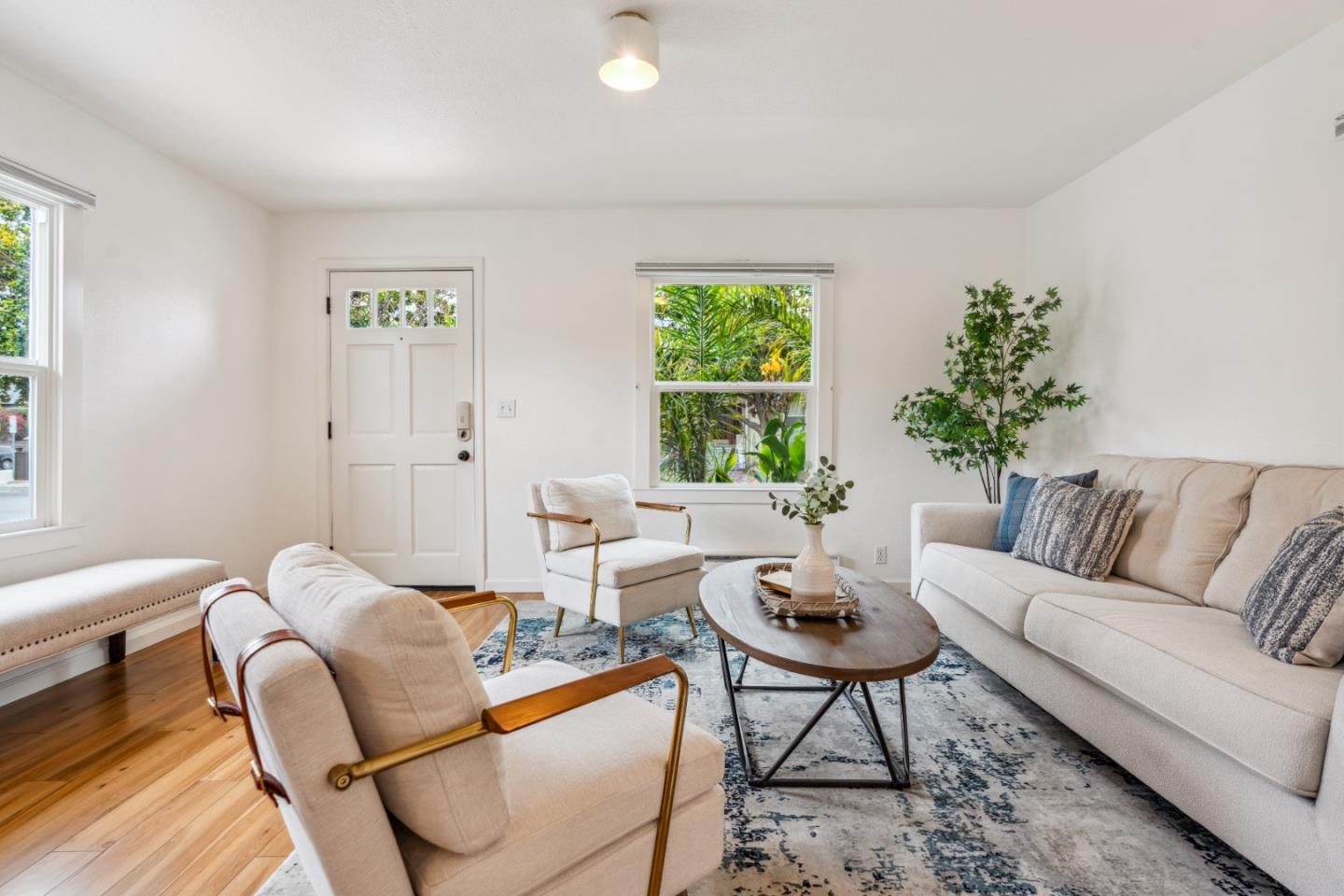 Imagine living in the heart of a bustling downtown community a few blocks from the beach. This thoughtfully remodeled home tucked behind lush landscaping exudes contemporary charm with stylish finishes. A sun-soaked deck, surrounded by potted fruit trees with room to garden. Plus, there's an outdoor shower (a must for any beach home)! Inside windows flood the living room with light, flowing into a dining area and open kitchen boasting travertine countertops and newer Bosch dishwasher. The home offers modern amenities like an LG washer/dryer and a bedroom with walk-in closet. And don't forget the detached garage a versatile space for your workshop, office, or art studio. This prime spot offers easy access to award-winning wineries, restaurants, cafes, shopping, art galleries, live music, and more. When you need a change of scenery, take a leisurely stroll through Neary Lagoon to the beach, or head to Santa Cruz Wharf for a stunning sunset view from one of the waterfront restaurants.