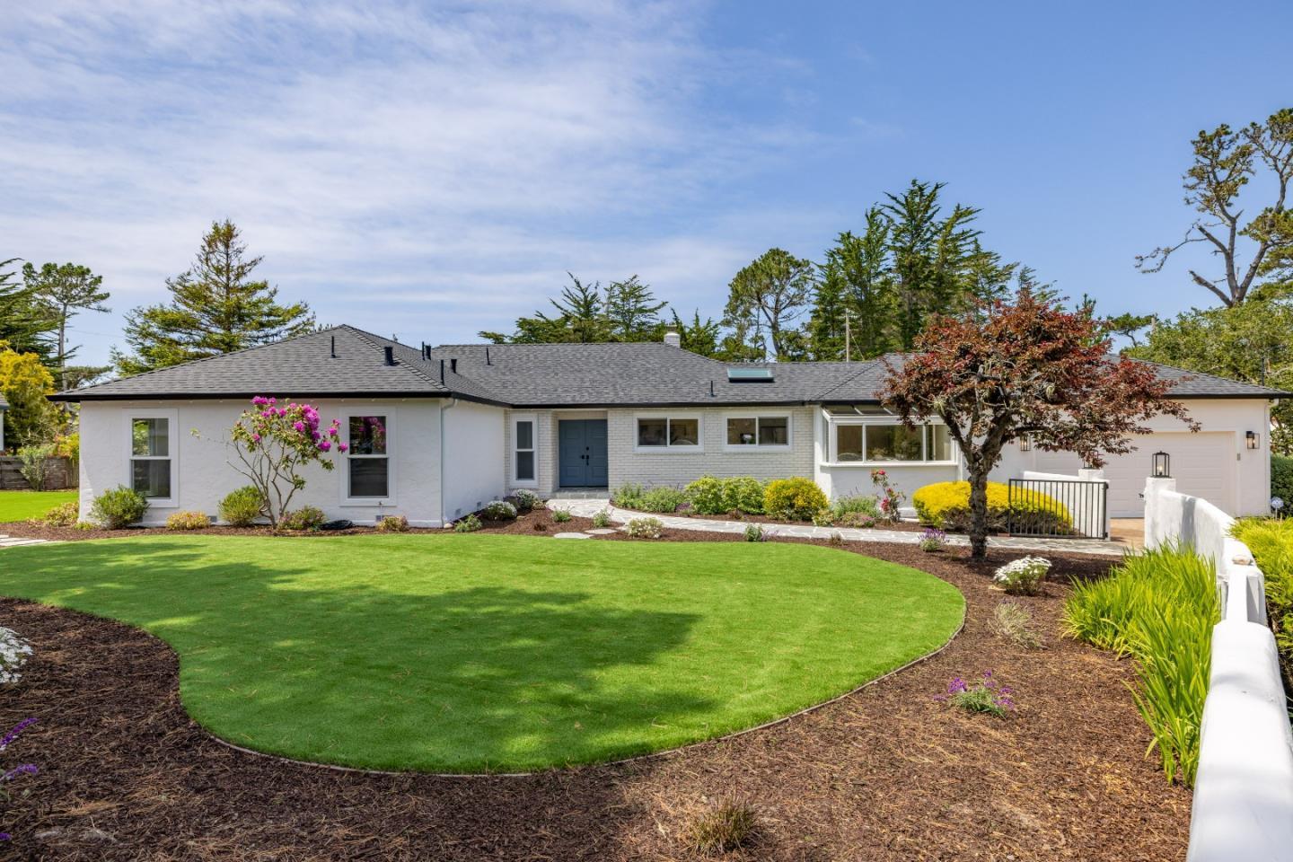 Optimally positioned on a prime, 1/3-acre corner lot off Old 17 Mile Drive and walking distance from the Dunes Shelter, MPCC, and the beach, this single-level dwelling exudes quality at every turn. Fresh off a total renovation that perfected the kitchen, three full baths, roof skylights, flooring, windows, sliding doors, landscaping, and hardscaping, the home benefits from southern exposure and an all-white color palette; each room is alive with natural light. Exploring the grounds - thoughtfully planned and usable yard space, and 1200 SF of beautiful flagstone patio-- there is always a new object of beauty to beguile the senses. Inside, relax by the towering fireplace, allowing the eye to follow white brick up to a vaulted ceiling and appreciate the way the space retains its integrity whilst flowing effortlessly from living room to kitchen to dining area. Three bedrooms promise an ideal retreat for guests or kids. Come live in the storied haven that is Pebble Beach.