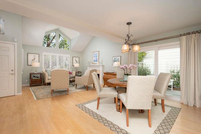 Stunning serene home offers a perfect blend of modern elegance and comfort. The spacious living room features high ceilings, recessed lighting, and a cozy fireplace, creating a warm & inviting atmosphere. The well-appointed kitchen boasts stone countertops, stainless steel appliances, & ample cabinet space, making it a chef's dream. The primary suite is complete with a large closet & beautifully updated ensuite bathroom with a dual vanity & luxurious walk-in shower. The second bedroom, guest bath & office/den complete the second floor. Outside, the low-maintenance backyard is perfect for entertaining or relaxing. The lush landscaping & patio area provide a serene oasis for outdoor enjoyment. Conveniently located near major tech companies, shopping centers, and dining options, this home offers an ideal location for Silicon Valley professionals. Public records shows 2BD plus a Den. The den could be used as 3rd BD. Buyer to investigate to their satisfaction.