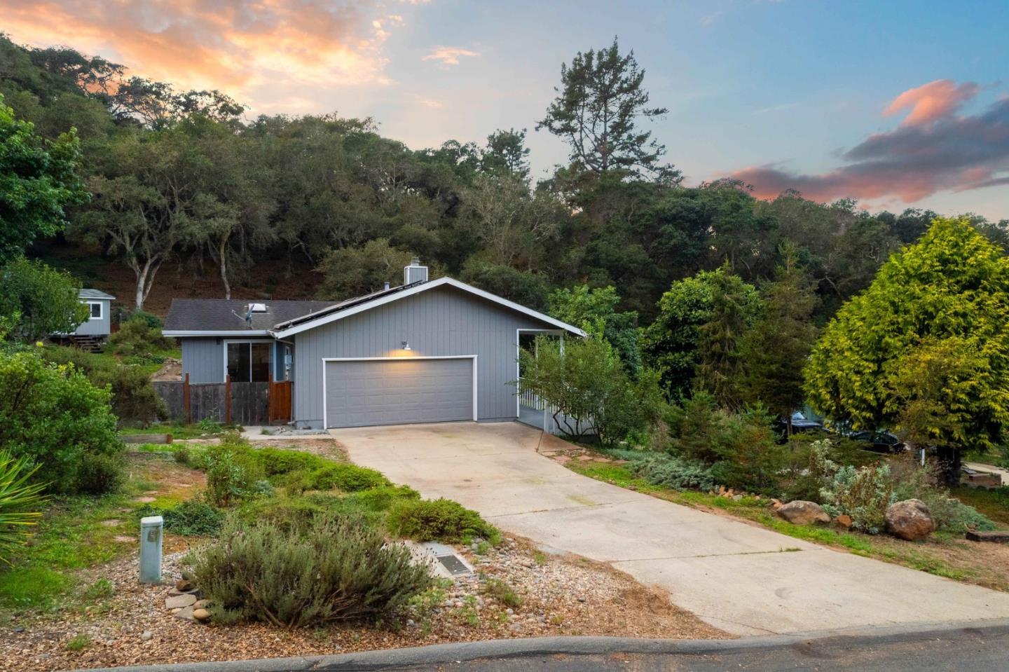 Welcome to 2462 Rifle Range Drive, hidden among the mighty oak trees and rolling hills. Situated on 1.45 acres, with nearly .25 acre fully fenced and usable, this thoughtfully cared for, 3 bedroom 2 bathroom single-level home has a welcome open floor plan with abundant natural light. Features include: granite countertops, top of the line gas range, remodeled bathrooms, wood and tile floors, electric fireplace insert, solar panels, a primary en-suite with a deck off the bedroom, heated tile floors in the primary bathroom, fruit trees, vegetable garden boxes, a detached studio perfect for an office and a low maintenance garden full of California native plants making the yard very drought tolerant and full of vibrant blooms in the Spring. Parking includes a two-car attached garage with a washer and dryer, as well as parking space for your guests. Located in a quiet cul-de-sac and centrally located to both Hwy 1 and Hwy 101, this home is a commuters paradise and ready for its next owners!