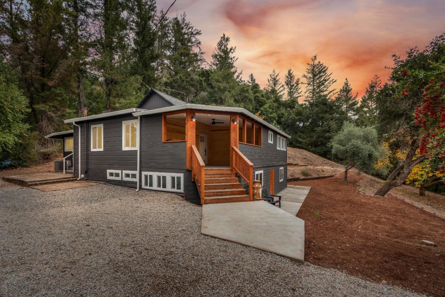 First time on the market! Soak in the stunning mountain views of this south-facing property across 18+ acres of land with the perfect blend of seclusion and convenience. This home's heart is the recently remodeled fully equipped kitchen, which seamlessly flows into the large living room. The fireplace enhances the living room with French doors that open to the yard, inviting warmth and natural light. The primary bedroom features a closet and an ensuite. The space below the living area is ideal for various uses, such as extended living quarters, a home office, or a playroom. Additionally, the detached workshop adds to the versatility of this property. Recent upgrades include air conditioning, new flooring, updated windows, and remodeled bathrooms, all enhancing the comfort and value of this exceptional home. It is just a mile from downtown Ben Lomond's boutique shops and restaurants and is at the end of a road for ultimate privacy. Special Use zoning allows for endless possibilities.