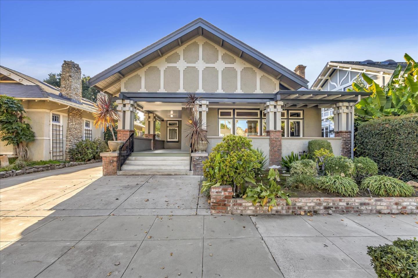 Incredible Naglee Park Arts and Crafts Masterpiece! Original craftsman features include a large wrap-around front porch, grand living room with fireplace and pocket door, and a spacious formal dining room with built-in buffet with leaded glass doors. Gleaming refinished oak and fir floors throughout with laminate kitchen flooring. The huge updated kitchen with tons of cabinetry features a center breakfast bar island, granite slab counters, all SS appliances, and an eat-in area with more cabinetry with glass doors. The 4th bedroom in the back is bright with many windows, and has been staged as a great family room. Fantastic potential to easily convert the back to a private apartment complete with bathroom and separate bedroom by simply closing off the hall to the front, leaving the main home as a 2-bedroom 1.5 bath. Great rental income potential! Also, the large garage has a side window and skylights, another great ADU opportunity. Close to SJSU and downtown theaters and dining.