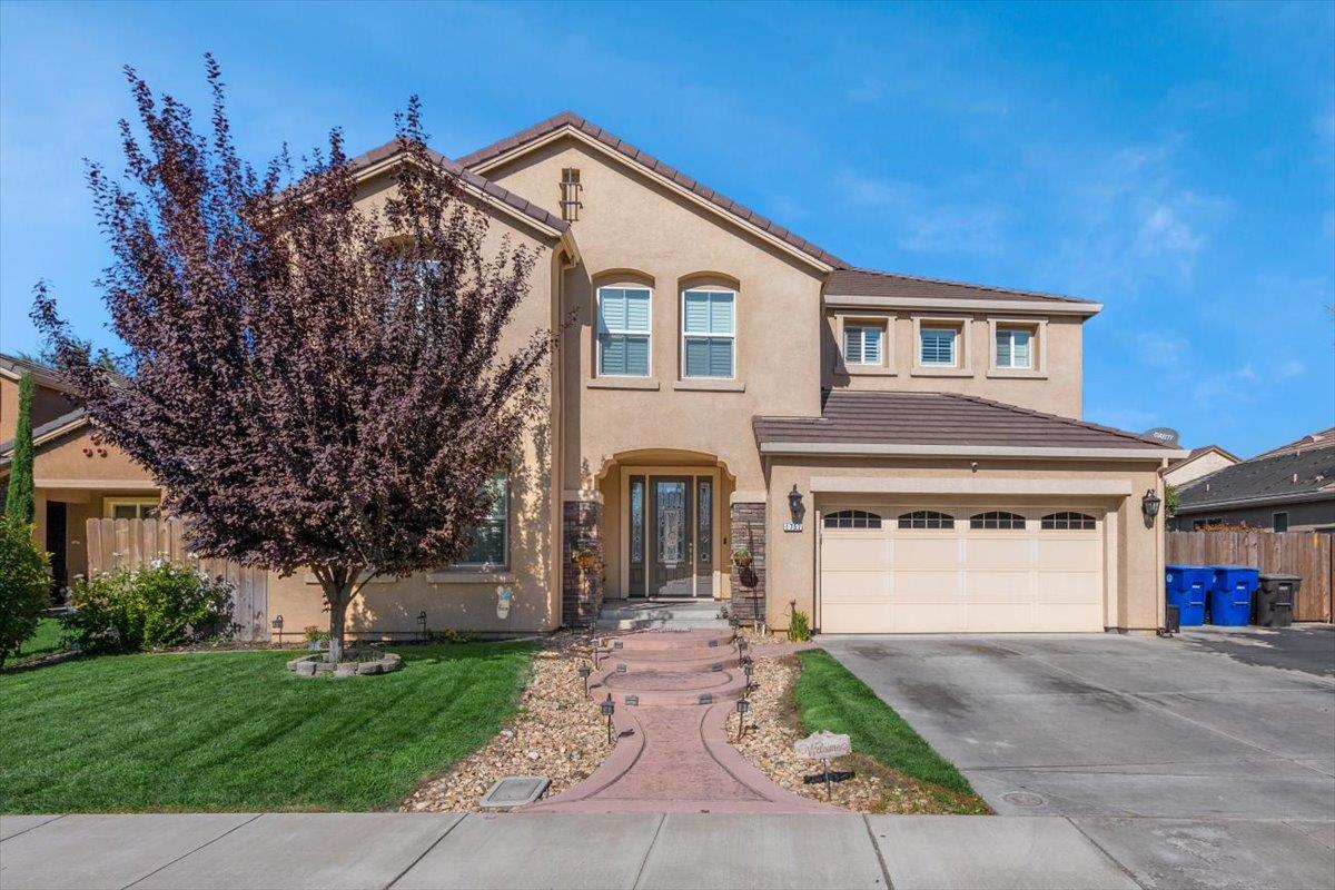 Welcome to this luxurious home situated in the heart of Manteca's newer developments. Come and experience the modern architectural interior. Perfectly designed with a grand entrance that leads you to an amazing foyer with soaring ceilings and a beautiful sweeping staircase and large decorative pillars. Boasting with 6bd/4ba and an astounding 4374 sq ft of living area. Updated granite finished kitchen with counter seating and top of the line appliances opening to the tremendous family room with fireplace. Sophisticated style and classic elegance unfolds across two levels with a gym downstairs, a large retreat area and 5 bedrooms upstairs. Top of the line steel security doors installed in front and back of the home. Updated baths throughout. Backyard meticulously landscaped with a large patio cover and side yard space for RV or Boat parking. Equipped with solar panels along with a back up battery pack perfect for owning electric vehicles.