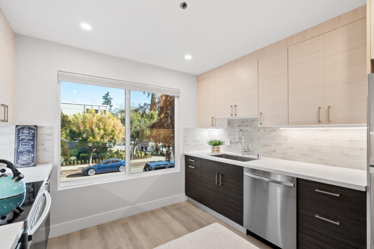 This move-in-ready Redwood City condo offers easy access to Caltrain, Whole Foods, and downtown shops while providing privacy away from the hustle and bustle. The spacious & open living-dining-kitchen area features recessed lights, luxury vinyl flooring, new paint, and large windows allowing for ample natural light to shine through. The remodeled kitchen offers stainless steel appliances, granite countertops, and modern cabinetry with a breakfast bar. The generous master bedroom comes with a wall-to-wall closet equipped with built-in organizers. Plenty of storage space in the additional closets within the condo and a large assigned storage space in the parking area. The well-lit complex, with a waterfall and Koi pond in the courtyard, calms you with a tranquil atmosphere. One covered parking spot in the secured gated parking area. Perfect for those wanting to be steps away from the vibrant downtown Redwood City scene, public transportation, and grocery stores!