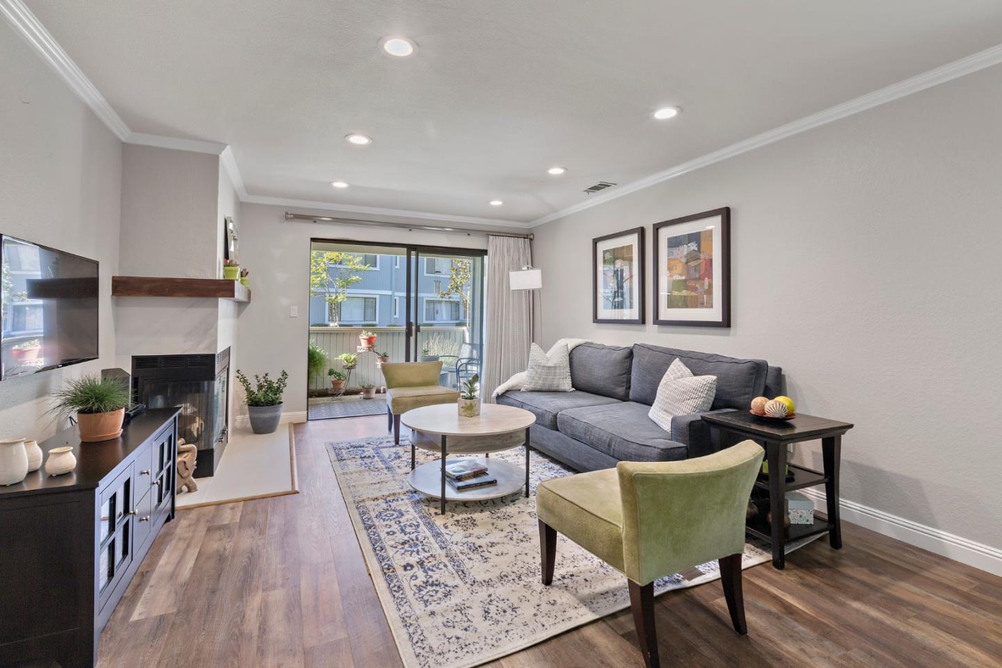 This gorgeous condo consists of 2 bedrooms, 2 full baths, which includes the primary bedroom with a useful alcove & its own private bath. Updated kitchen w/luxurious quartz countertops, stylish tile backsplash, & freshly painted cabinets. Easy to care for luxury vinyl plank flooring in kitchen & living areas as well as recessed lighting. Beautiful crown molding throughout. Favorable living room/dining room combination. Cozy fireplace with impressive updated tile, & convenient in-unit laundry with full size stackable washer & dryer. Cute private patio with a relaxing view of the complex greenbelt. Finishing out this fantastic home is a 1 car garage with ample attic storage, & 1 additional outside parking space. The complex amenities include a refreshing pool & spa, and park-like grassy areas. The Crossings is across the street from Frank Fisher Park, playgrounds, tennis courts, & close to Ardenwood's coveted Forest Park Elementary school. American High School "is far above the state average in key measures of college & career readiness" according to Great Schools. Convenient to highway 880, 84/Dumbarton Bridge & Union City BART station.