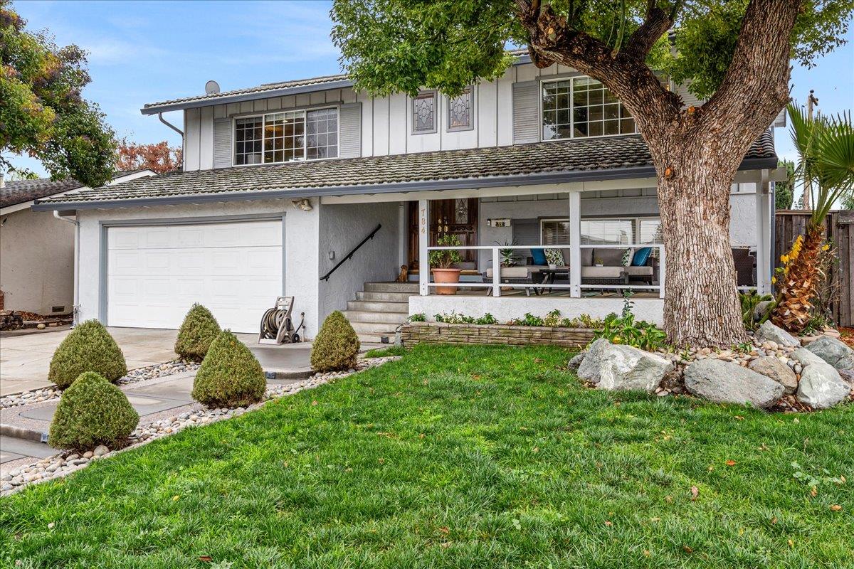 This home offers a blend of modern updates, functional spaces, and stylish features that make it a desirable choice. From the inviting large covered front porch to the cozy wood-burning stove, this property has a lot to offer for comfortable living and entertaining. Split-level floor plan boasts a separate living room and family room. High-end distressed hickory hardwood flooring for a luxurious feel, dual pane windows for energy efficiency. Abundance of light and views from large windows throughout and Recessed LED lighting. Custom ledge stone accent wall with sconce lighting for a stylish focal point. Bosch gas cooktop for high-quality cooking, pull-up breakfast bar, under counter lighting and garden windows for a bright and airy kitchen. Oversized primary bedroom and bathroom with dual sinks, dual-width tub with 12 jets for hydro massage and separate standing shower will foothill views. Interior laundry room with backyard access. Enclosed storage room in the garage for added convenience. Resort style Entertainer's backyard with Black Bottom pool and spa, pergola with stone patio and synthetic lawn for low maintenance landscaping. Conveniently located close to Westfield Mall, Trader Joe's, Whole Foods and more. Walk to nearby Park. Direct access to Highways 85 & 87.