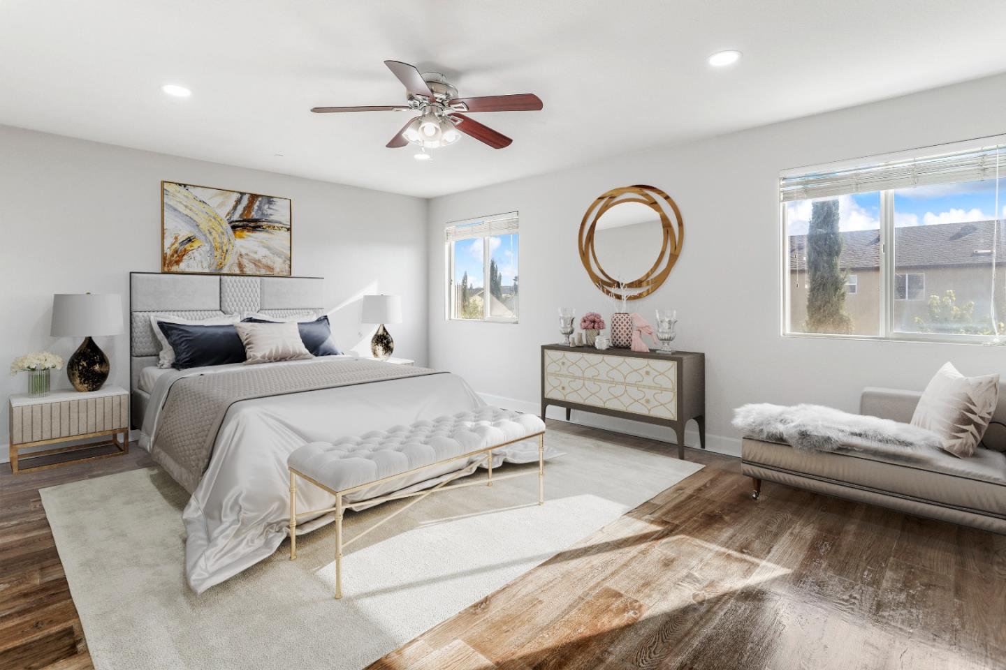 Open, Luxury & Quiet 5 Bed 3 Full Bath Dwelling perfect for multi-generation or big family home. The house is move-in ready & boasts tons of upgrades: The kitchen has been updated w Gorgeous Alaska White Granite Countertop & beige solid wood cabinets with soft closing door/drawer. The bathrooms feature Orlando Gold Granite counter tops n Kohler vanity faucets n sinks. 8-inch-wide solid American oak hardwood floors throughout (5/8" thick, NO FORMALDENHYDE). 24 New full spectrum 6000K LED light in living, kitchen & master bedroom. 12x24 in tiles throughout wet area & tiled shower walls up to ceiling in all 3 baths. 30 in Farmhouse kitchen sink with new kitchen faucet. 9' high ceiling thought out 1st floor; fresh interior, exterior paint, n garage floor. Fully landscaped with matured pine, citrus, peach tree, LOW MAINTENANCE, and features French drainage under the back yard lawn. 1 bedroom and 1 bathroom are located downstairs. The house is away from railroad tracks n busy streets and is within walking distance to Peyton (K-8th grade) schools and SL Fong community park. There is "NO HOA" in this community. The house is conveniently located near freeways 99/4/5 and is just min away from shopping malls, theaters, restaurants, WinCo, Walmart, Oakmoore Golf course, Miracle mile & etc