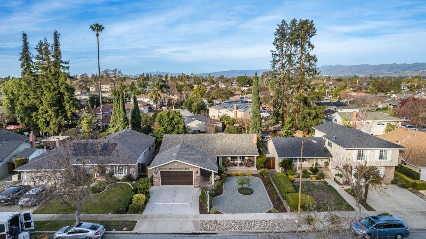 Nestled against rolling Santa Teresa hills in one of San Joses friendly neighborhoods, find this lovely three-bedroom/two-bathroom home beaming with curb appeal. Sunlight streams through the living room's large windowperfectly framing the masterfully landscaped front yardand highlights gleaming hardwood floors and a white brick fireplace. Pass through a formal dining space brightened by an elegant chandelier to find the adjacent eat-in kitchen with stainless steel appliances and sleek shaker cabinetry. The backyard is the definition of indoor-outdoor living, with a large, covered patio and garden vignettes lined with citrus trees and lush foliage. An entertainer's dream, host al-fresco meals on warm California evenings. A primary suite with a spa-like ensuite accompanies two cozy guest bedrooms and a full hallway bathroom. Other features include an attached garage, a dedicated laundry room, and a desirable location amidst plentiful parks, trails, and shopping centers to explore.