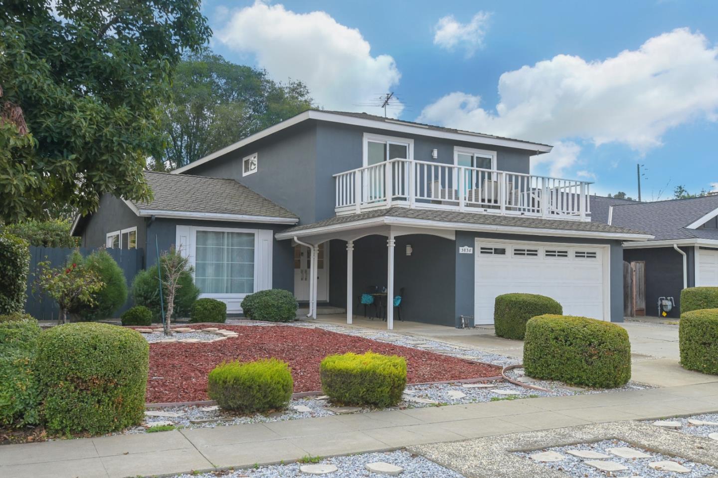 This lovely Blossom Valley beauty has fresh interior paint, luxury vinyl wood flooring, double pane windows, recessed lighting, new kitchen cabinetry, new granite countertops, all new stainless steel appliances, new stainless steel sink, faucet and garbage disposal. Both the Primary bathroom and downstairs half bath have been remodeled. A fresh carpet runner up the staircase has also been recently installed. Great curb appeal with low maintenance, drought resistant landscaping, huge backyard with spacious covered Trex deck, artificial turf lawn area, sturdy tough shed and secondary metal tool shed. This yard could easily be a perfect candidate for an Accessory Dwelling Unit (ADU)!