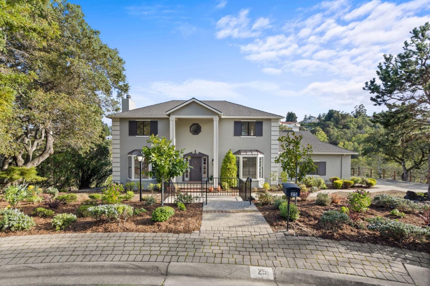 Wonderful views, large lot, and a quality home await at the House on Sugar Hill. As sweet as the name of the street it is on (Persimmon, "fruit of the divine!") this cul-de-sac residence brings the lush natural surroundings inside, with great scale and light in each of the rooms of this custom-built home. The stately facade welcomes you to a grand foyer with soaring ceilings. To the left, a large-scale living room features sliding glass doors that open directly to the sunny southwest facing deck, allowing for easy indoor/outdoor living. The welcoming family room and kitchen are the heart of the home, with an oversized kitchen island, brand-new stainless steel appliances, and a perfect layout for casual or formal entertaining. Shake up a martini at the wet bar and lounge in front of the fireplace, or host dinner in the formal dining room. In the morning, enjoy your coffee in the dining nook while soaking in the expansive canyon vistas! Upstairs, the large primary suite has two walk-in closets and a balcony overlooking the treetops and great bay views. Two generous bedrooms and a spacious hall bath complete the second story. The 36,750 sq ft lot is filled with potential...swimming pool? Sport court? The limit is your creativity. Welcome home to home "sweet" home on Persimmon Court!