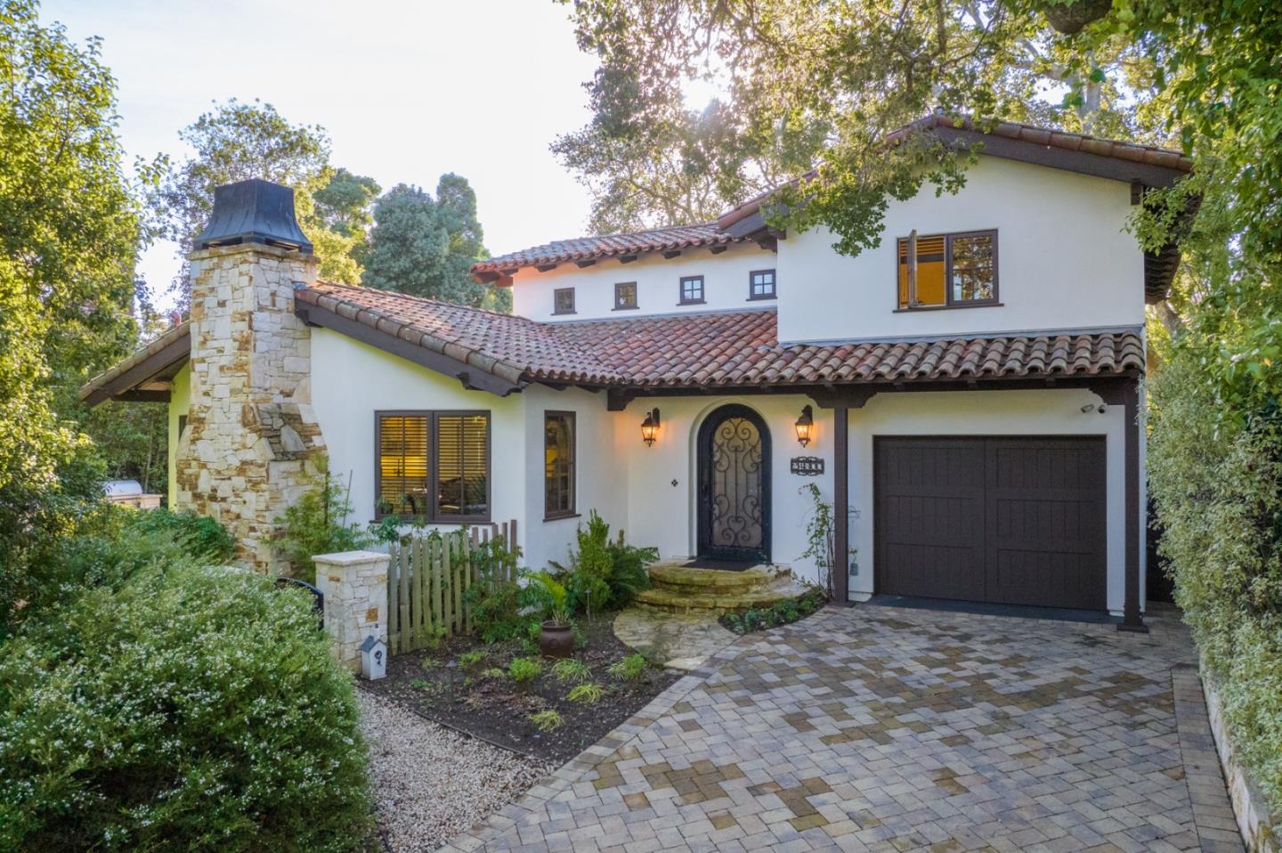 Stunning, sophisticated Spanish hacienda! Rebuilt in 2015 and impeccably cared for, you'll feel like you are in a brand-new home. Masterfully crafted in timeless Mediterranean style, this spacious 2,248 SF home has 3 bedrooms, 2 bathrooms, and a bonus room. Oak floors, Carmel Stone fireplace, wrought iron railings, limestone counters and tile, custom cabinetry, and a wet bar. The private yard on this 6,100 SF lot features a Carmel Stone built-in BBQ on its sunny patio, and the lush, mature landscaping and foliage complete the enchanting ambiance. This is the home you've been yearning for in the leafy and serene Carmel Woods, just minutes from the white sand beach and all Carmel-by-the-Sea's charms.
