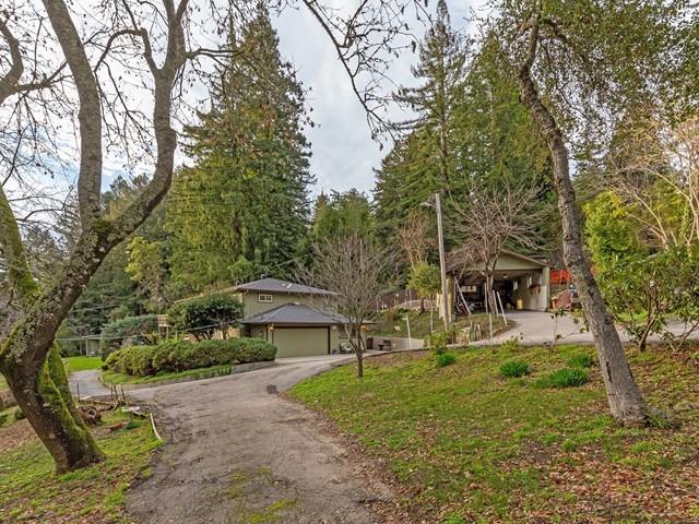 Welcome to mountain retreat with modern comforts on lovely 1.62 acre sunny setting! This 4-bedroom, 3 bathroom home boasts 2435 square feet of living space. Breathtaking views greet you from the front porch. The tile entry with a two-story high ceiling sets the tone for the spacious interior. The main living area features a kitchen with updated appliances, tile counters, a garden window offering beautiful views and slider to back patio and pool area. The living room and dining room combo showcase exposed wood beams, a fireplace, and a slider to the balcony with redwood forest views. The lower level offers a family room with a wood stove, perfect for cozy gatherings. Primary suite with newer oversize shower and walk-in closet. Spacious bedrooms and closets, laundry room with half bath off garage. Spacious garage with workshop and abasement storage workroom. Sunny expansive grounds include a pool, hot tub, and additional carport plus barn and garden area. Great private well. Best Loma Prieta Elementary and Los Gatos High schools. Fantastic easy to drive location with access to Summit Rd & Highway 17, 10 min to town, Close to Summit Store, wineries, great hiking and biking trails. Don't miss the opportunity to make this your own!