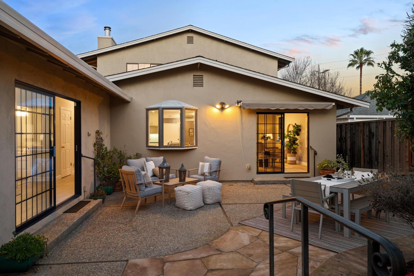 Situated in Redwood City's desirable Roosevelt neighborhood, near the tranquil Red Morton Park, 724 Windsor Way is a beautifully updated property featuring a main house and a separate guest house. The main residence, spread across 3,528 sqft on a 7,150 sqft lot, offers 4 bedrooms and 3 bathrooms. It has been recently renovated with new hardwood floors, plush carpeting, and a fresh coat of soft beige paint. The living room, with its focal-point fireplace and large sliding doors, opens to a cozy courtyard. The kitchen is a chef's delight, equipped with high-end appliances and extending to an outdoor patio. Upstairs, the primary bedroom provides a private retreat with a deck, walk-in closet, and spa-like en suite bathroom. Additionally, the property boasts a charming guest house with one bedroom, one bathroom, a kitchenette, and direct access to a serene backyard fountain and sitting area. This property, nestled on a tree-lined street, combines suburban peace with accessibility to city amenities, making it a perfect blend of comfort and convenience.