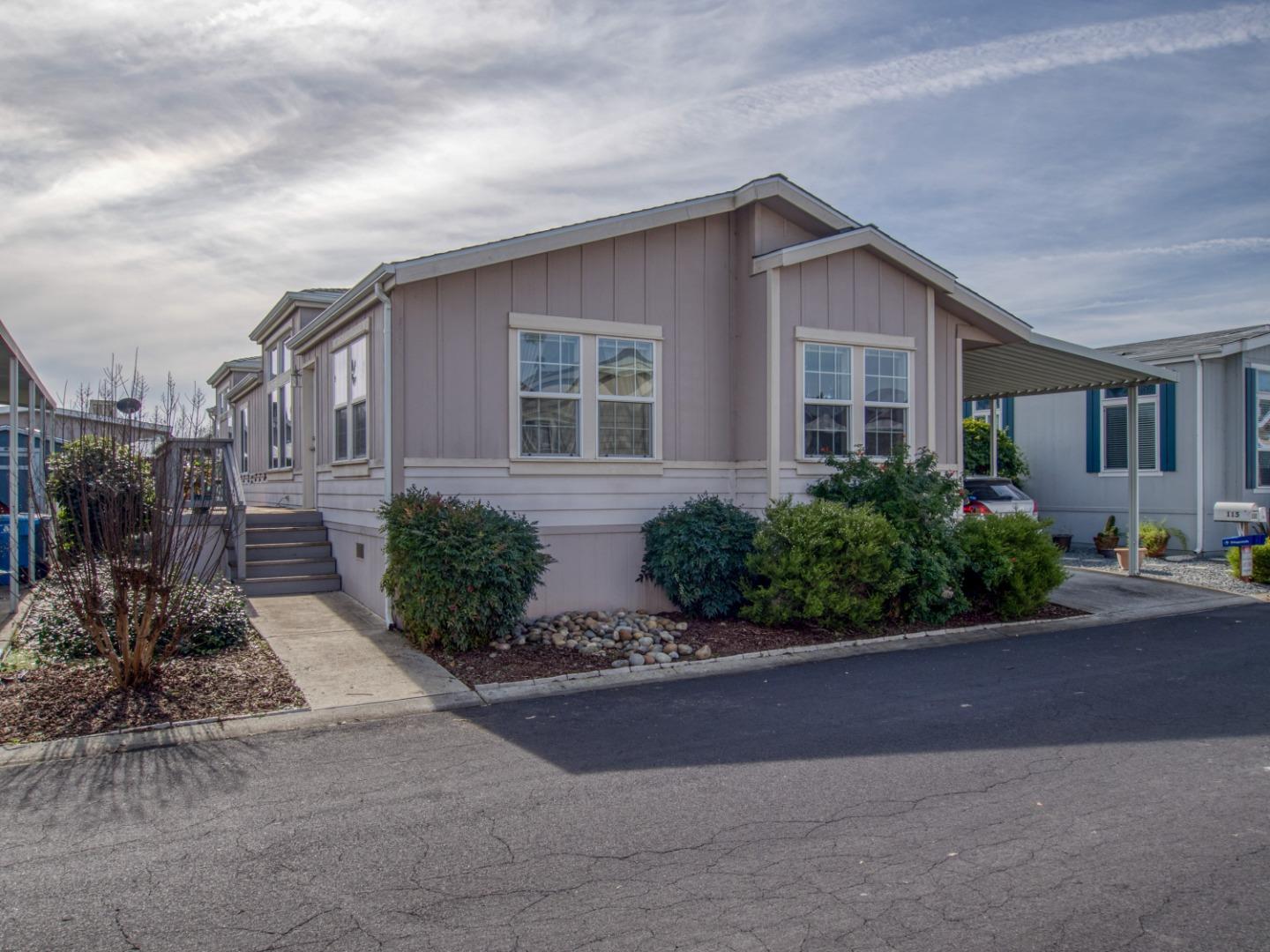 Experience the Best of Home Living! This exceptional manufactured home offers the comfort of a single-family residence, featuring high vaulted ceilings & abundant windows for a warm, naturally lit ambiance. The family room, aglow with a wood-burning fireplace, invites cozy gatherings. Delight in the well-designed kitchen w/ an island, desk/work station, & walk-in closets in 2 out of the 3 spacious bedrooms. The primary bathroom is a true oasis; the convenience of a dedicated laundry room adds a thoughtful touch. Don't just rent, own this charming 3-bed, 2-bath haven & make every day feel like home! Enjoy a wealth of amenities including a community pool, recreation hall, ample guest parking, and water, all covered by the inclusive space rent. Situated near Gilroy High School, this location offers proximity to various stores & dining options. Plus, with quick access to 101 south or north just minutes from home, your daily commute or weekend adventures are effortlessly within reach! Uncover the Charms of Gilroy. Take a journey to explore the area and the fantastic features of manufactured home living. Drive a little, save a LOT! Your new home and a world of possibilities awaits, schedule your visit today!