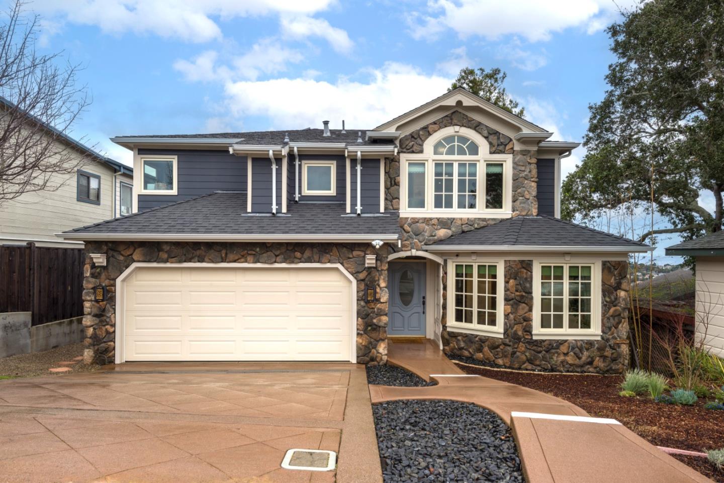 Distinctive features abound in this pristine & enchanting custom home w/ Panoramic Views! "Designed for Living" this 4 BR, 3 BA home is a superb melding of traditional style & inspiration. LR w/ newly refinished HWF's, vaulted ceiling, marble hearth FP w/ a dramatic wood mantel. Adjacent is the 4th BR/Library/or Office w/ built-in bookshelves, closet, & views of the San Carlos hills. LR transitions to the formal DR w/ a sliding door that leads to the entertaining deck w/ mesmerizing views of the SC/Belmont hills, SF, the SF Bay, & East Bay from the rear windows. The bright KIT is equipped w/ ample built-in cabinets, granite counter & stainless appliances. Adjacent to the KIT is the FR that reflects comfort & function & is steps away from the cozy KIT dining area w/ a window framing the picture-perfect views. Custom curved decorative iron staircase & soaring ceiling leads to the landing that overlooks the lower level. The primary BR boasts a serene ambiance w/ French doors offering a dramatic view that takes your breath away. Primary BR & BA share a double-sided FP. The remodeled Primary BA is a spa-like retreat & is adjacent to the dressing/bonus room. The two other Bedrooms share a beautifully appointed en-suite BA providing convenience & luxury for occupants & guests.