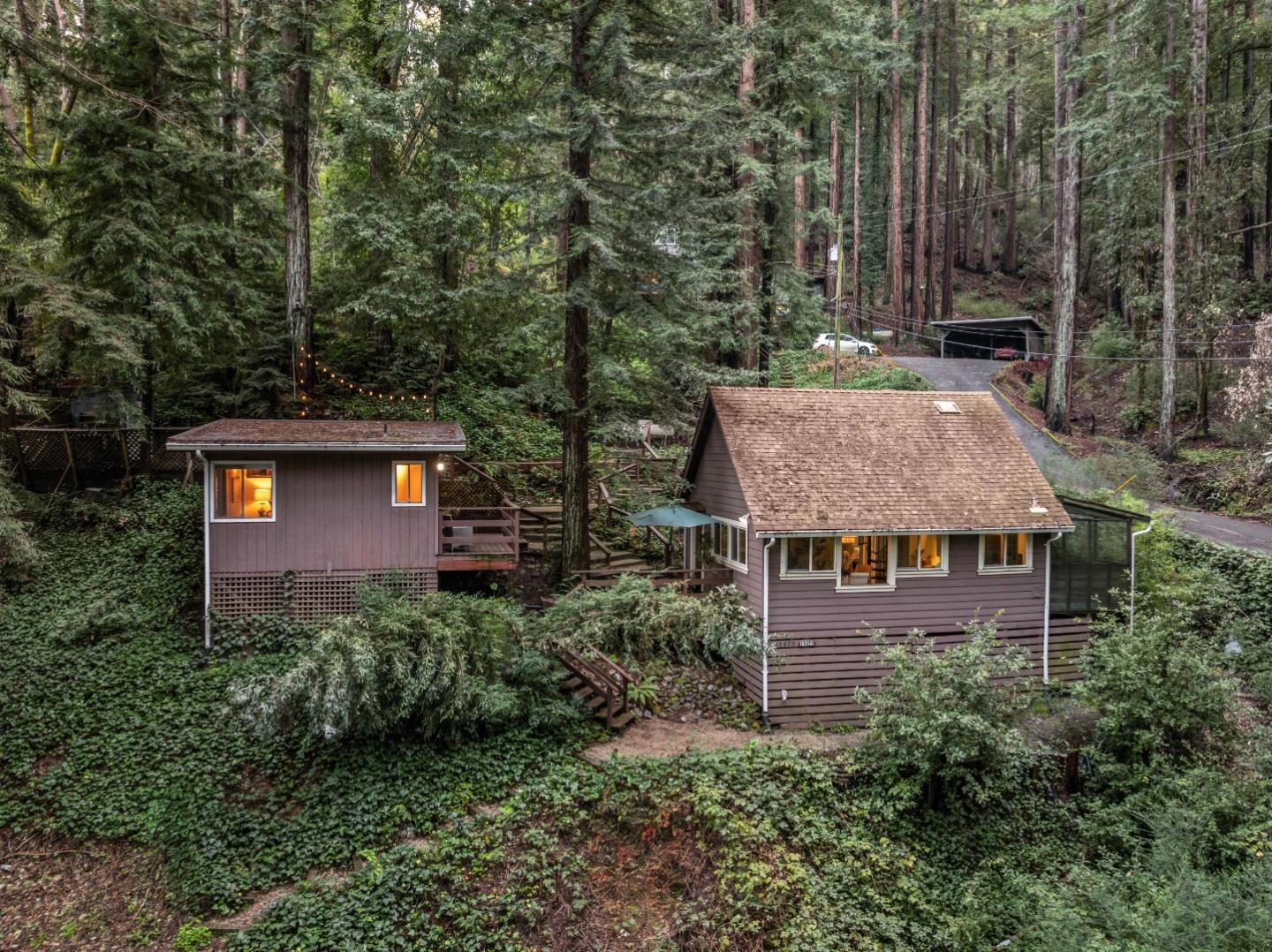 Discover the epitome of mountain sanctuary in this enchanting 2-bedroom cottage, complemented by a separate guest house in the coveted Forest Springs community. Step into a new day with the panoramic vistas visible from your expansive redwood deck, where the morning light filters through towering redwood trees. Your haven of tranquility offers modern comforts, including an equipped kitchen boasting stainless steel appliances and the warm allure of a gas fireplace to cuddle up beside. The eco-friendly fixtures in the studio guest house showcase the home's fresh and conscious approach to mountain living. Ample parking space accommodates your guests easily, inviting spontaneous golf outings at the nearby Boulder Creek Golf Course or leisurely visits to downtown Boulder Creek. With quick access to Saratoga, Redwood City, and Santa Cruz via historic Hwy 9, this Forest Springs retreat is your gateway to a life of secluded luxury and boundless natural beauty.