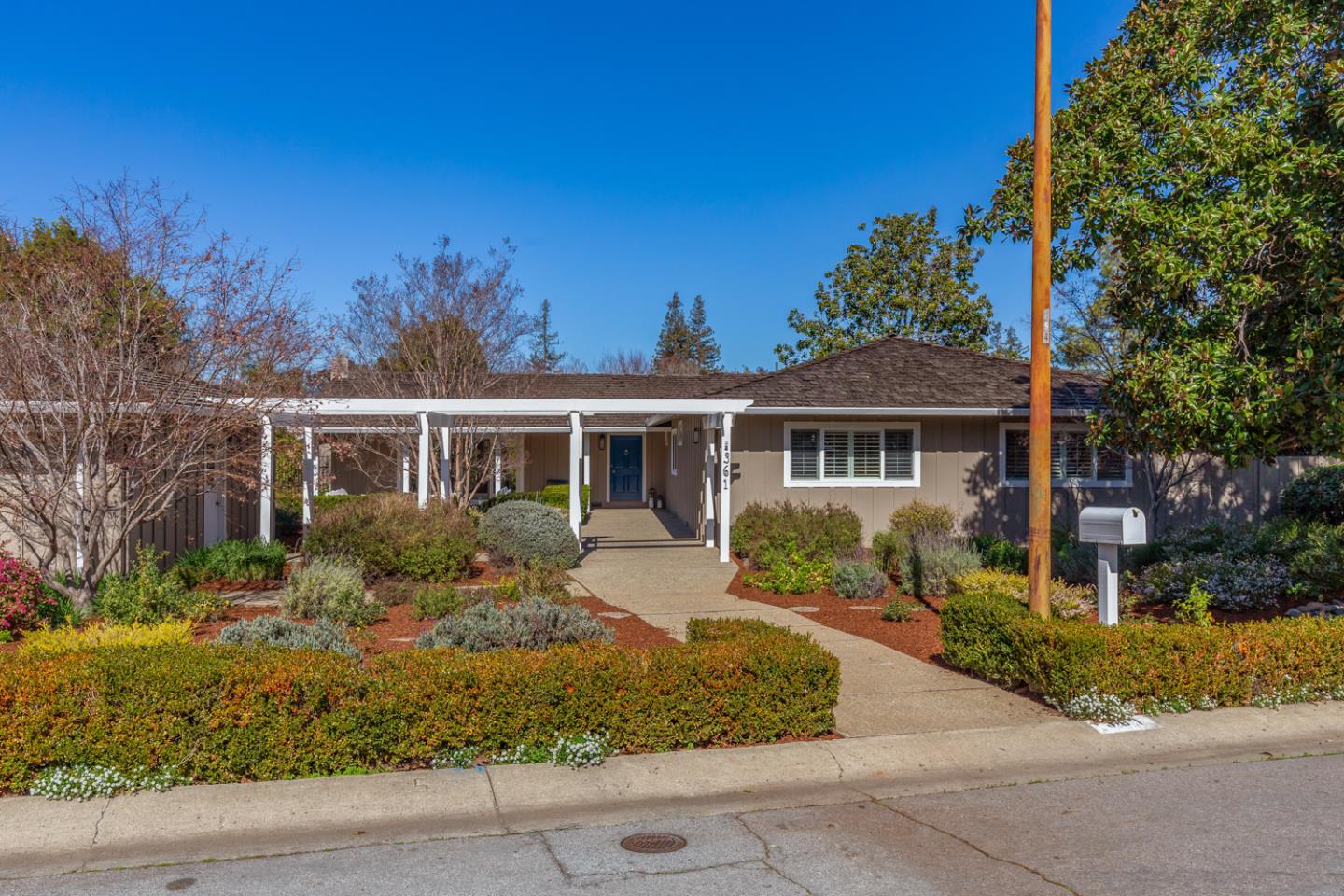 This sprawling single level home sits on a large, approximately 13,879 square foot lot in premier North Los Altos. Set back from the street for added privacy, the home features a gorgeous living room with vaulted natural wood ceilings, gleaming hardwood floors, an entertainers dining room, a granite-appointed kitchen open to the family room, and a private bedroom wing with four very spacious bedrooms including the light-filled primary suite. The floor plan lends to both large-scale indoor/outdoor entertaining, and functional, everyday family living. The front of the home has manicured, drought-tolerant plantings and a large patio, and the incredibly private backyard enjoys level lawn, a sparkling pool and spa, and high perimeter hedging. A wide pathway connects the house to the three-car garage with extensive storage. Located in an idyllic neighborhood close to downtown, acclaimed schools, and San Antonio Village.