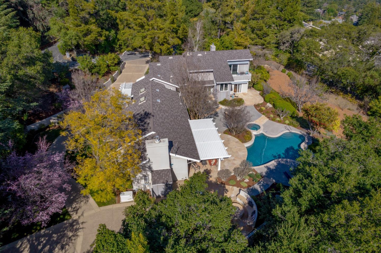 Indulge in the epitome of luxury living with a myriad of amenities crafted to elevate your lifestyle. From the moment you enter you are greeted by an exceptional foyer with amazing views opening to an expansive open concept living space adorned with high-end finishes & tasteful design. Immerse yourself in the culinary delights of the gourmet kitchen, equipped with stainless steel appliances, an island & inviting breakfast bar. This stunning residence boasts 3 generous bedroom suites. Relax & rejuvenate in the opulent primary suite, compete with walk-in closet, vaulted ceiling, gas fireplace & balcony. The spa-like primary bath has freestanding tub, double sinks, separate make-up vanity, oversized shower, heated floors & a beverage station. Stay connected with the convenience of a home office for seamless remote work which includes two work stations. Expansive gently sloped grounds with beautiful views, multiple entertaining area, gas fire-pit, built in barbecue, exquisite pool & spa, an orchard, vineyard, rose garden, majestic oak trees, numerous ornamental flowering trees. Convenient location just above the Village of Saratoga with award-winning restaurants, wine bars, coffee shops as well as the many hiking trails, Hakone Gardens, Villa Montalvo, The Mountain Winery
