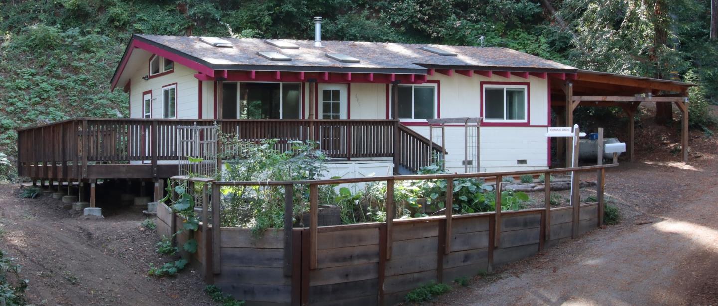 Last chance! Sweet 2 bedroom home ready to occupy as your own or a weekend getaway or vacation location. Enjoy the quiet serenity of the redwoods, plant a garden, or take a hike on the many trails. This solid home features natural sunlight beaming through the multiple skylights. A renovated kitchen with Heartland gas range, dishwasher, stainless steel sinks, butcher block countertops, free-standing gas fireplace for plentiful warmth; double pane windows and a tankless water heater. Two separate bedrooms with plenty of storage. Recently remodeled bathroom with oversized walk-in shower and newer stackable inside washer/dryer. Spacious exterior redwood deck for entertaining or possible expansion for additional room as well as the covered deck off the front. 2-car oversized carport built from local redwoods and bonus generator. Less than 7 minutes to historic downtown Boulder Creek, up the hill from the Sawmill Restaurant, Garrahan Park, not far from San Lorenzo Valley Pool, Boulder Creek Library and only 30+ minutes to the Beach Boardwalk and Santa Cruz.