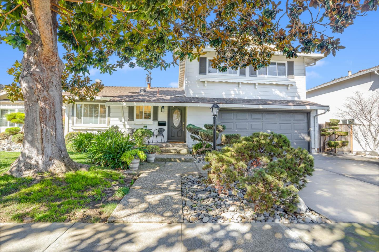 Situated on a quiet cul-de-sac in the heart of Santa Clara, this well-maintained home offers a spacious & flexible layout with ample living space. Inside, a large living room features vaulted ceilings & picture windows overlooking the beautiful backyard. Sliding doors lead out to a patio, perfect for indoor-outdoor living. A bonus room with a Murphy bed & private access to the patio provides a versatile space for a den or extra bedroom (4th bedroom). The downstairs half bath can be expanded to a full bath. The formal living area features a fireplace and is currently staged as a large dining room. The primary suite offers a peaceful retreat with an en-suite bath and a private balcony overlooking the backyard. Enjoy relaxing evenings on the spacious patio or under the pergola in the well-maintained backyard. This move-in-ready home includes fresh interior and exterior paint, central heating and air conditioning, & ceiling fans in all bedrooms. Convenient access to schools, parks, restaurants, & major commute routes!