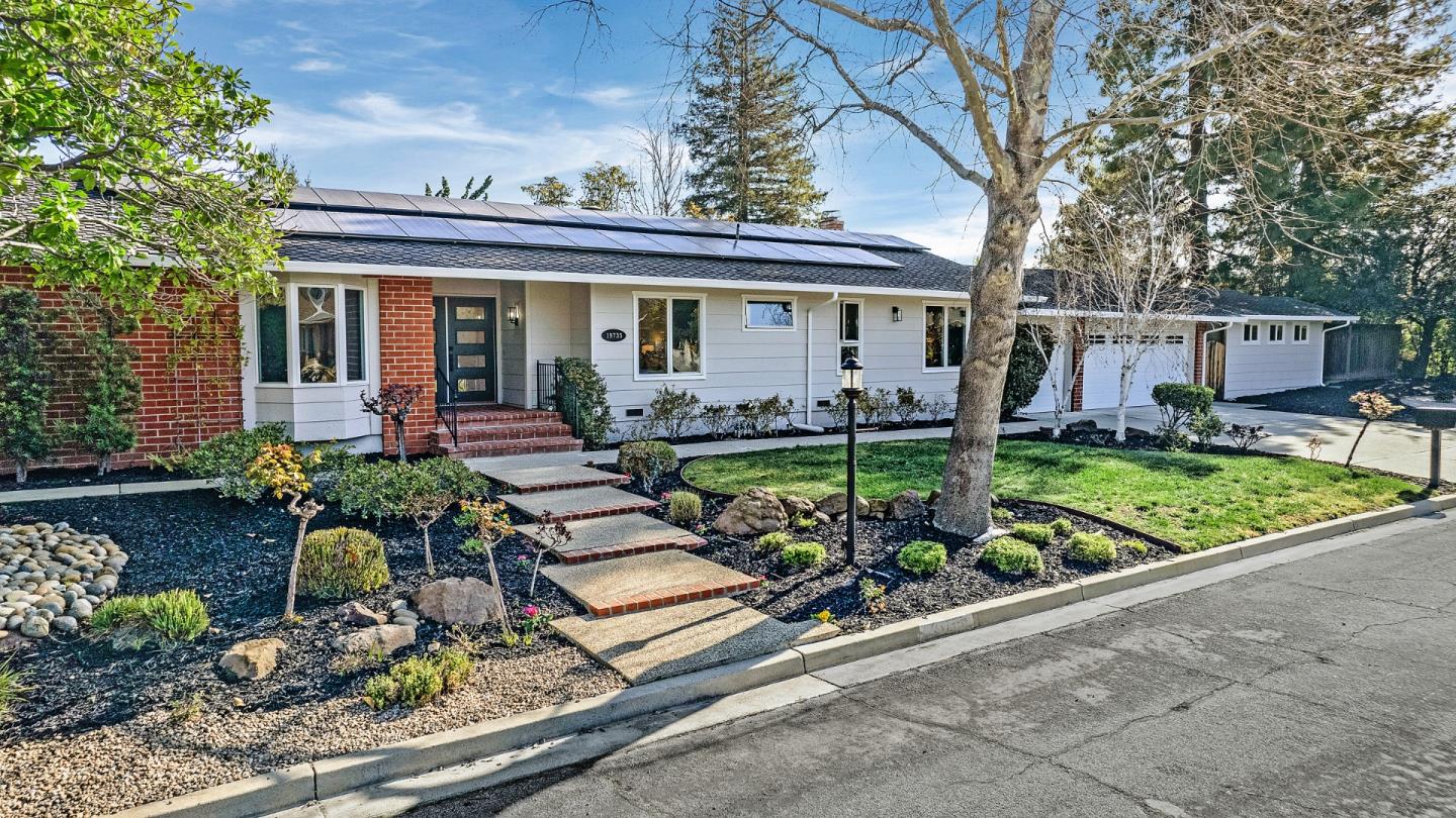 Move in and enjoy this single-story residence nestled in a prestigious neighborhood. Recently remodeled with designer finishes, this home boasts award-winning Saratoga Schools. The total living space includes 4 bedrooms and 2 full bathrooms in a main structure of 2,156 sqft and a detached office of 236 sqft. The grand entryway welcomes guests into a living room with an elegant fireplace and high ceiling. The family room with vaulted ceiling offers ample space for quality family time. It opens to the serene backyard, creating an inviting indoor-outdoor flow. The gourmet kitchen with custom cabinetry is ideal for hosting gatherings. The primary suite boasts high ceilings and walk-in closets. The other bedrooms are perfect for kids and guests. The detached office has heating and windows. A 3-car garage, indoor laundry and solar panels add to the sustainability of this home. The pool beckons for relaxation, surrounded by lush landscaping. Enjoy picking fresh peaches and lemons from backyard orchard. Easy access to highways 85 and 280, and close to Netflix, Apple, and other high-tech companies. Easy access to downtown Saratoga and Westgate, Farmers Market, Safeway, grocery stores, as well as many restaurants and the Saratoga Public Library. Great local parks within walking distance.