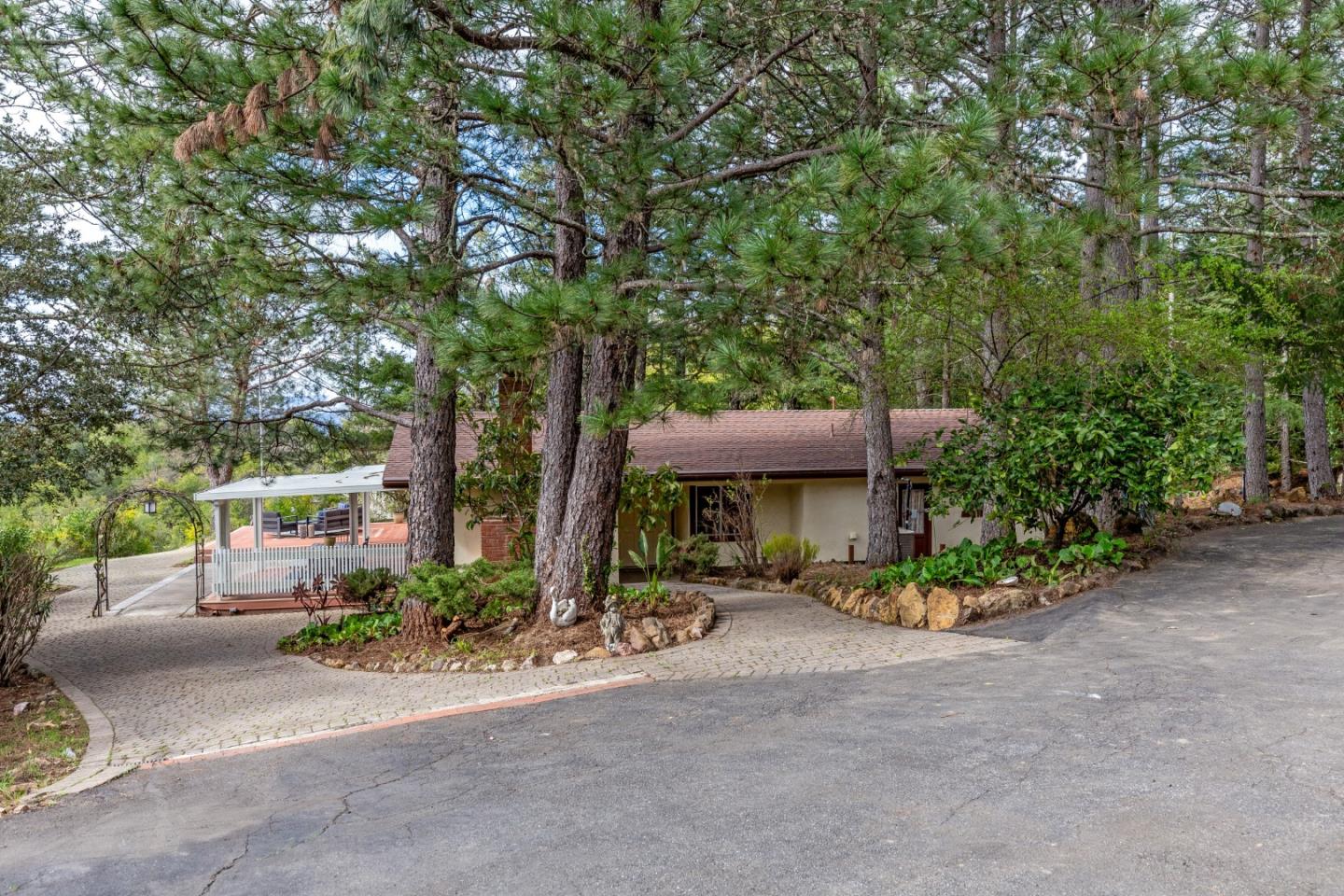 Stunning views to Monterey Bay and beyond. Its a peaceful slice of heaven just waiting for you. This amazing 11 Acre property has a single level home thats light and bright with panoramic views from nearly every room. Turn-key and ready for you and your family. Primary suite with 2 more bedrooms, dining room with built-ins and a large living room with wood burning stove and bookcases. Newly remodeled kitchen and baths with all new cabinetry, Quartz counters, laminate flooring, lighting & interior paint. Large family room with bonus square footage approximately 200 ft.². Off the living room is an expansive covered patio with great space to entertain and enjoy more views! Room for a Gentlemens farm. Drive into a large motor court able to accommodate 5-10 cars. 5 car, connected garages with separate HVAC, additional propane tank and workshop. Additional outbuilding used as an office/artist studio and shop with 3 rooms and many windows. A green house and so much more. All protected by a recently installed propane powered "back-up generator. Ideal for someone who needs lots of space for cars, trucks and a home business. Possible AUD. All behind a beautiful custom gate! This home has easy access off the road and is private in every way with amazing "Million Dollar" views!