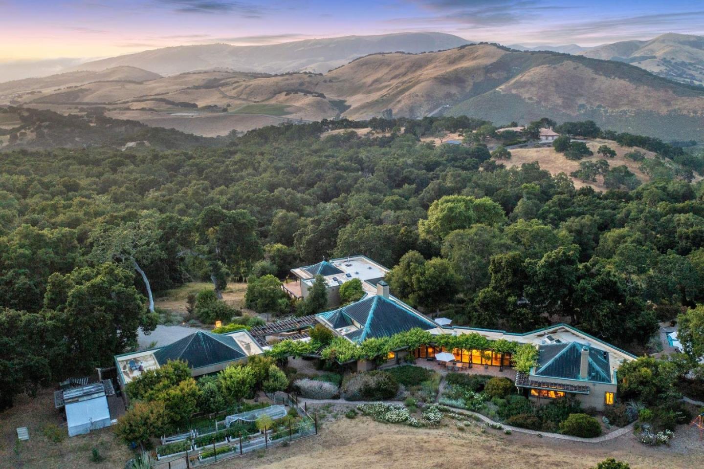 Indulge in the architectural brilliance of this Frank Lloyd Wright inspired custom home. Situated within a gated community, this magnificent estate occupies a sprawling 40-acre lot adorned with majestic oak trees and gentle terrain. The chef's kitchen and sizable butler's pantry are sure to delight culinary enthusiasts. Revel in the opulence of Western Red Cedar-paneled 21 foot ceilings. The centerpiece of outdoor entertainment is a 60-foot infinity lap pool with a slide, accompanied by a pool house and gym. Embrace nature with the established vegetable garden, green house, and potting shed. A sizable barn for storage or the car enthusiast. Room for equestrian pursuits. State of the art fiber optic communication system with high bandwidth. Secluded and serene yet conveniently just 15 minutes to Carmel Valley Village. In the sought-after Carmel Unified School District. Immerse in luxury living, where architectural mastery and high-tech capability harmonizes with natural splendor.