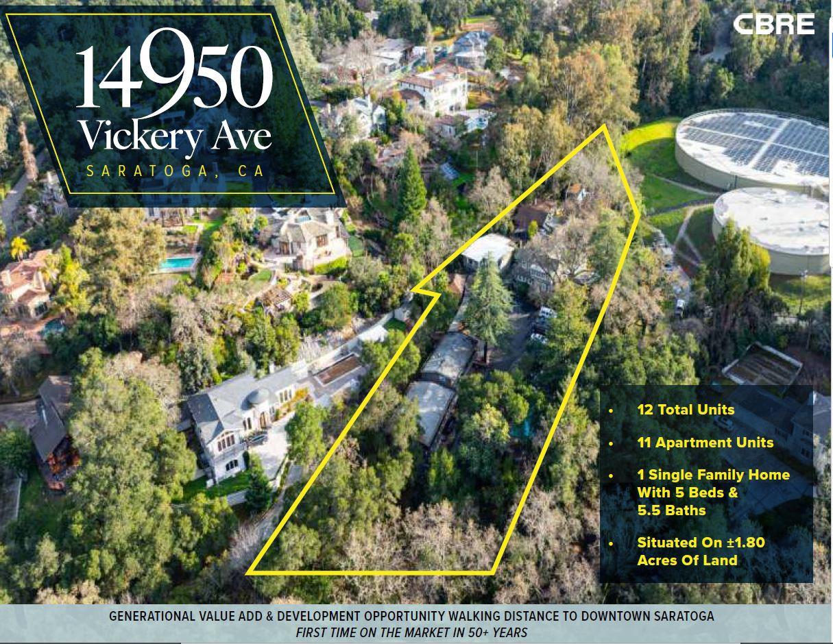 14950 Vickery Ave is a Residential Income in Saratoga, CA 95070. This 11,007 square foot property sits on a 1.8 Acres Lot and features – bedrooms & – full bathrooms. It is currently priced at $6,625,000 and was built in 1910. This address can also be written as 14950 Vickery Ave, Saratoga, CA 95070.