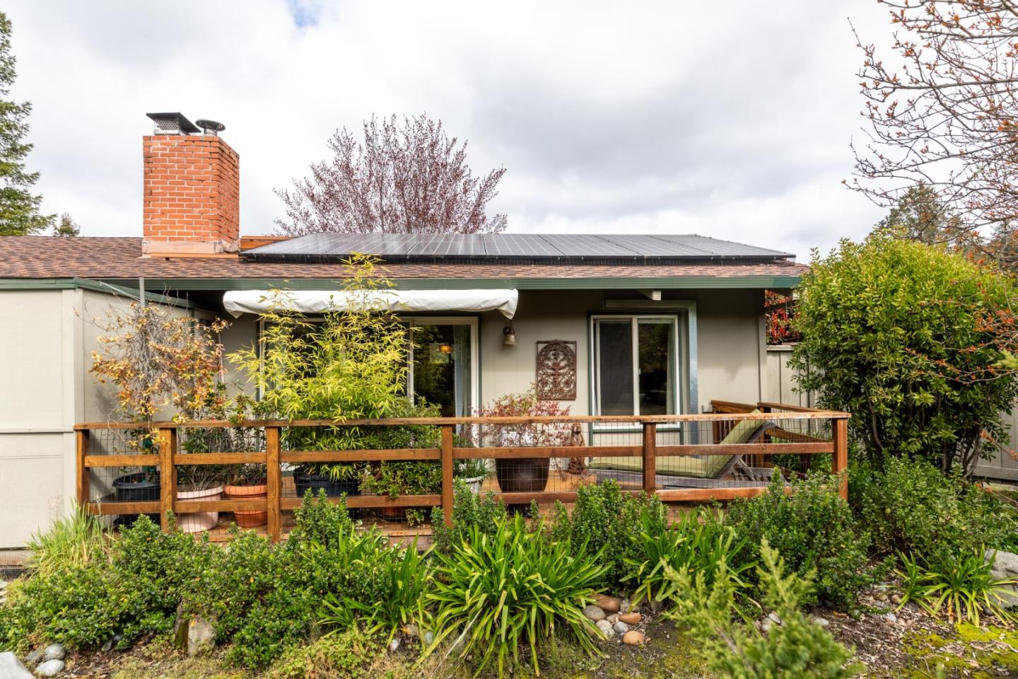 NEW PRICE! This is a lovely, well maintained condo at the Boulder Creek Country Club. Spacious feel with open beam ceiling. End unit overlooking the pool. 1 bedroom, 1 newly remodeled bathroom. Solar system installed in 2021. Ceiling fans and energy efficient wood burning fireplace. Redwoods, trails, tennis and tranquility await you.