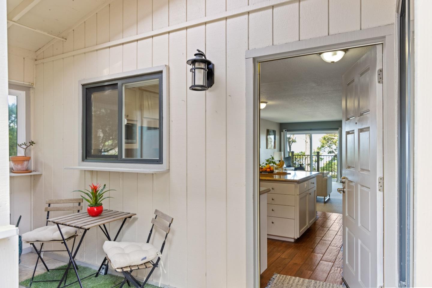Enjoy beautiful ocean and forest views from this private Monterey oasis in Skyline Forest where multiple windows illuminate beautiful west facing vistas. Youll love this upstairs corner unit with open floor plan, chefs kitchen with island and cozy gas fireplace in the living room to warm your evenings. Boasting 2 bedrooms, a double walk-in closet, 1 bath and indoor laundry, this desirable Tanglewood unit is filled with natural light. The balcony is an extension of the living areas and a great spot to admire nature from white-water waves crashing at Point Joe to colorful sunsets. Great location convenient to shopping, hiking trails and hospital with easy access to Highway 1. Enjoy the stress-free ease of condo living and make this property yours. Coastal living at its best!